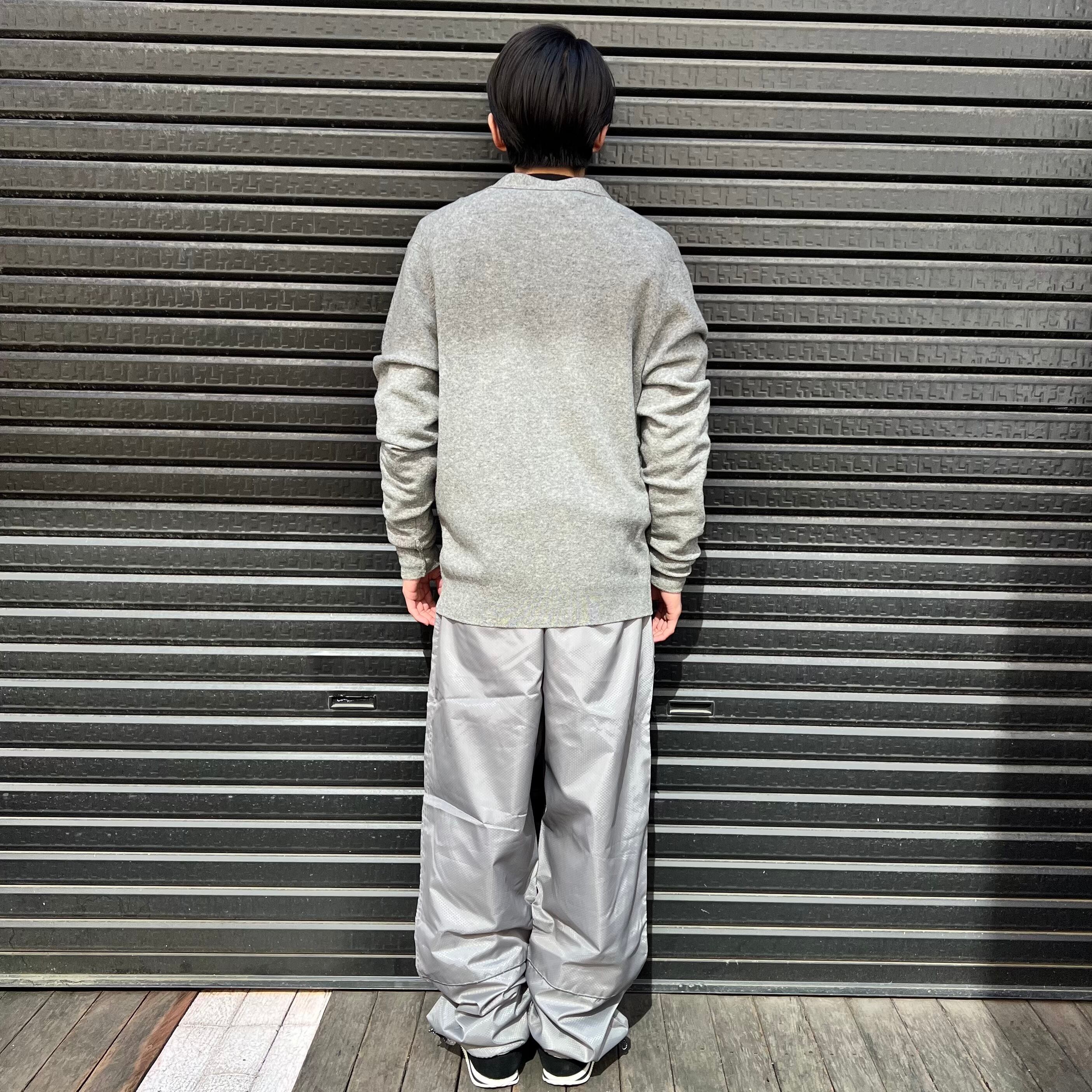 グレーのラムウール素材、左ポケットにロゴマーク刺繍、両サイドにポケット、5ボタンのスタンダードデザインです。