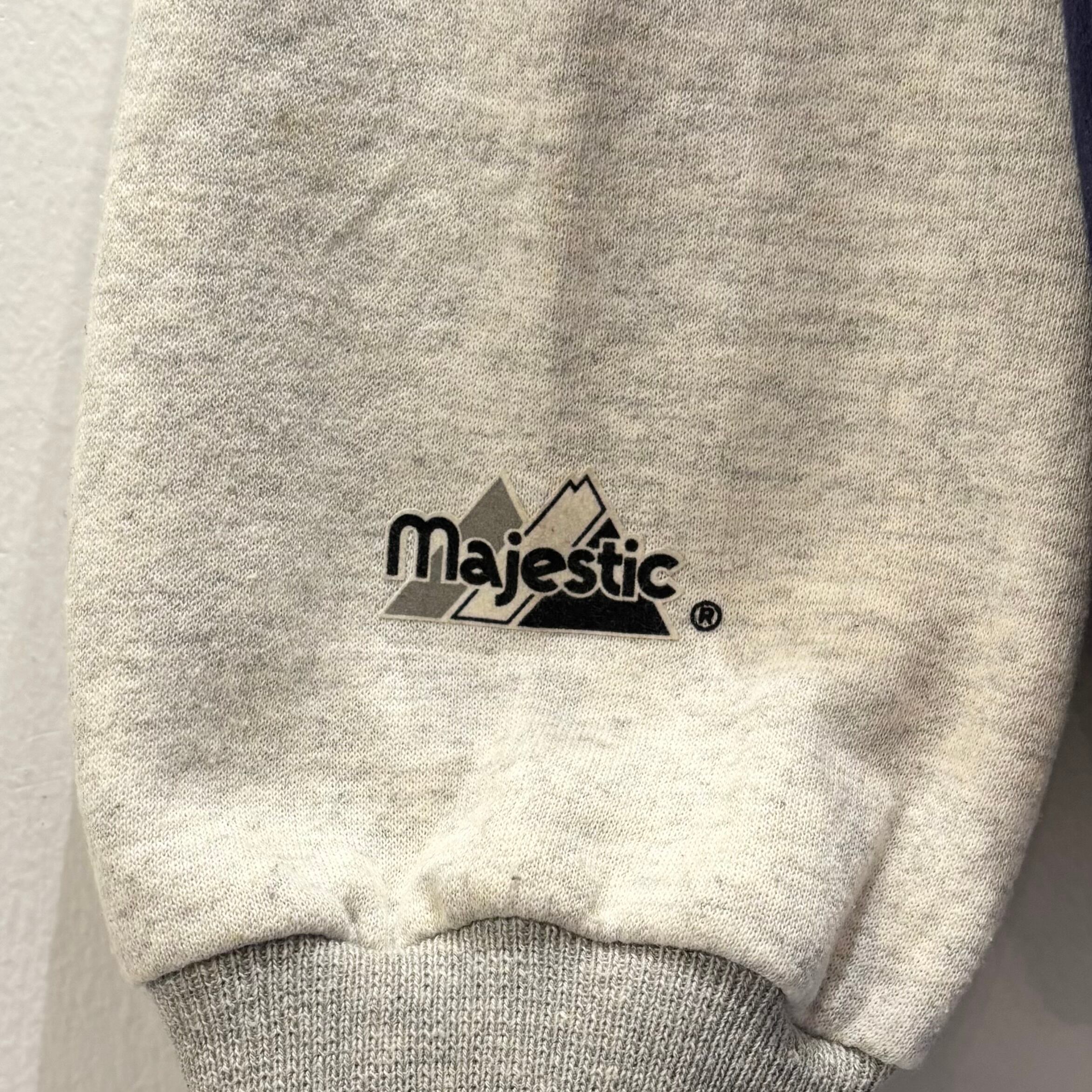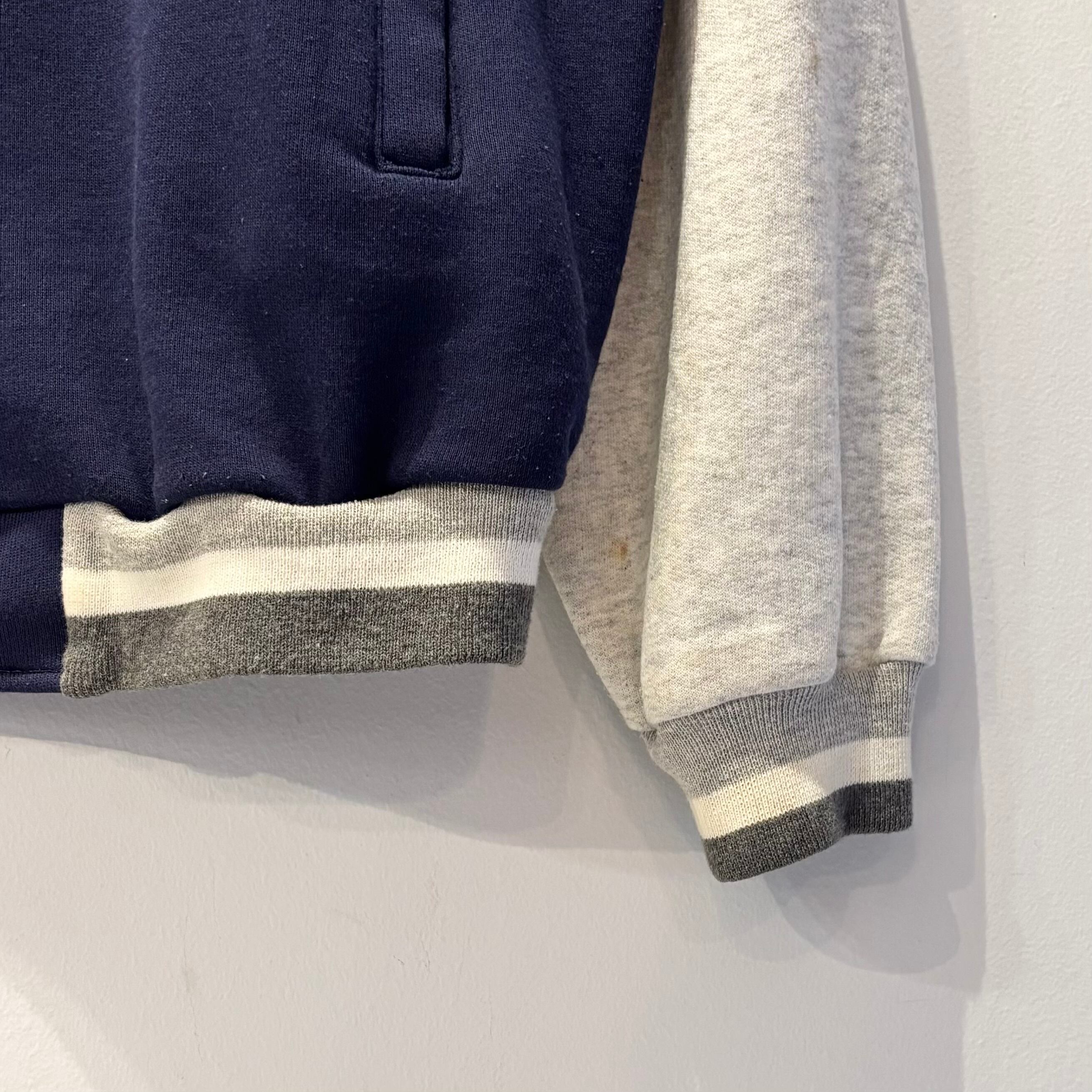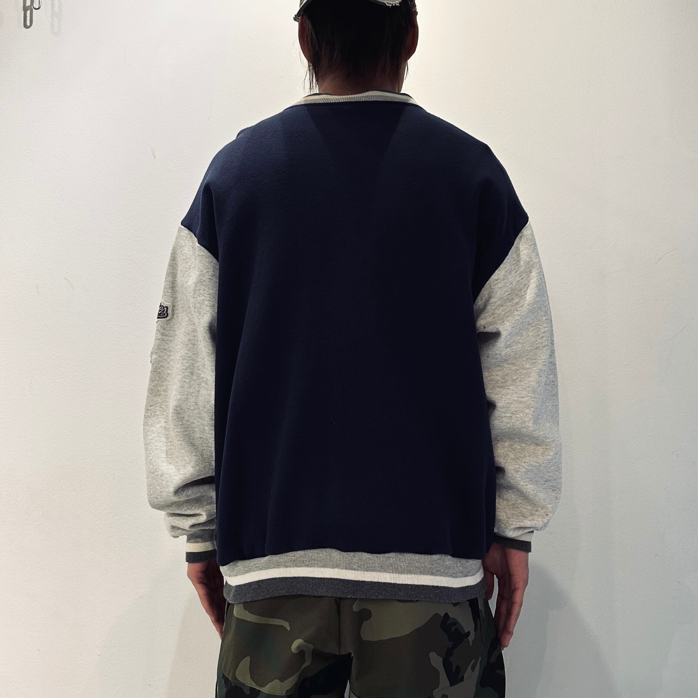 ネイビーxアッシュグレーの裏起毛素材、左胸にNYロゴマークワッペン、右胸にWORLD CHAMPIONSHIPワッペン、左袖に1996 WORLD SERIES CHAMPIONSワッペンの付いたデザインです。