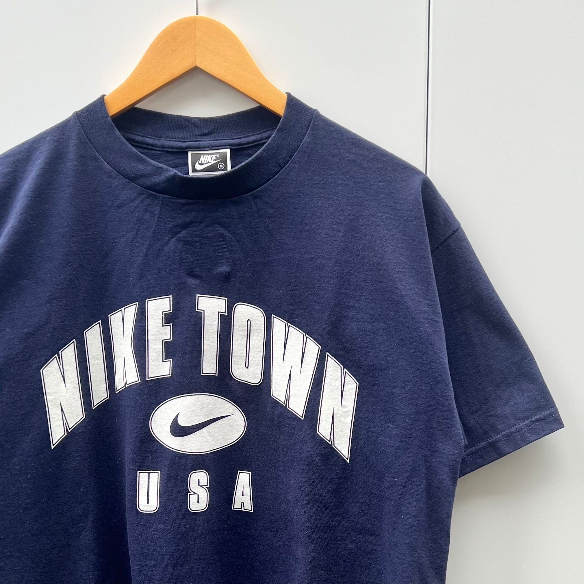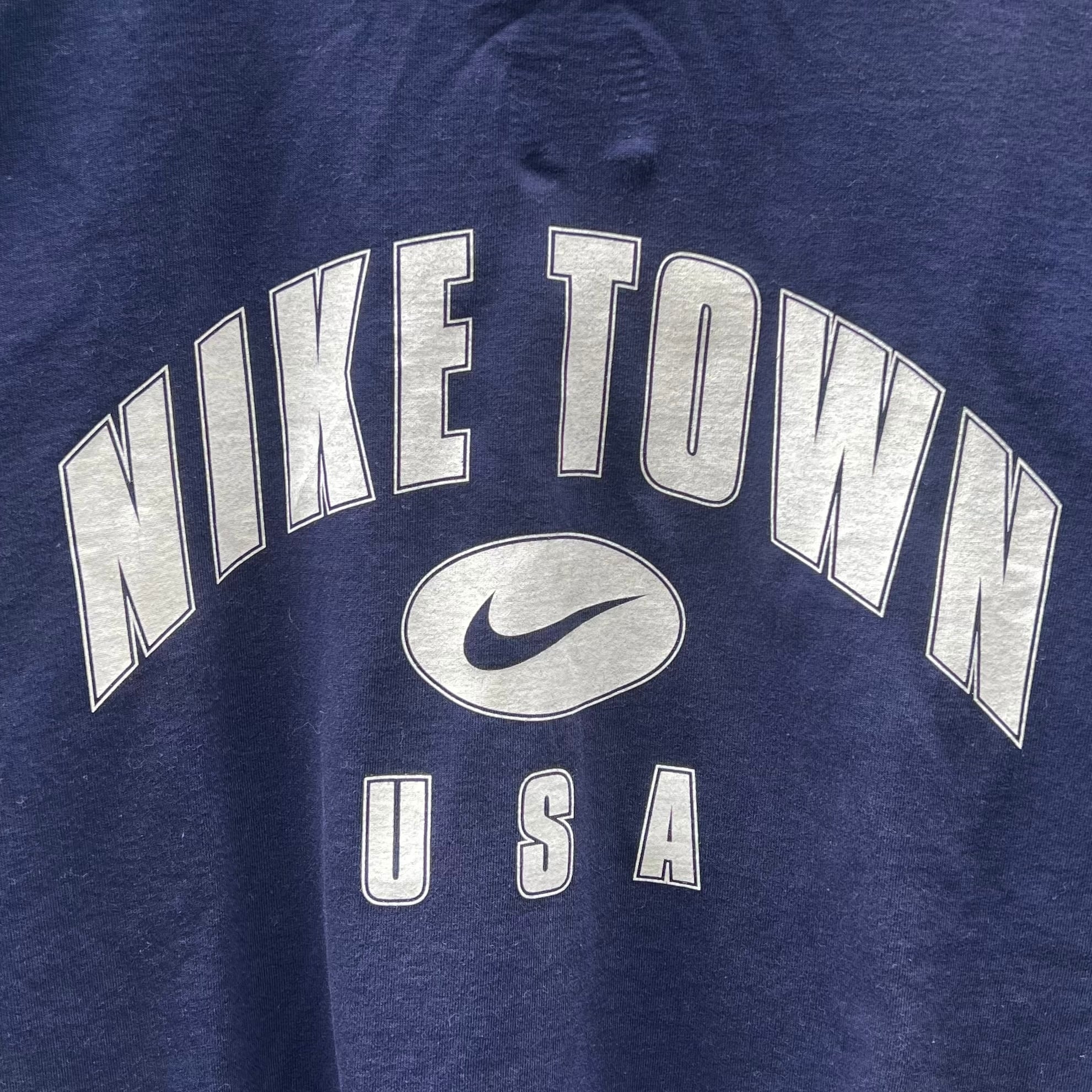 ネイビーのコットン素材、フロントにNIKE TOWNとスウォッシュ、USAプリントの入るシンプルデザインです。