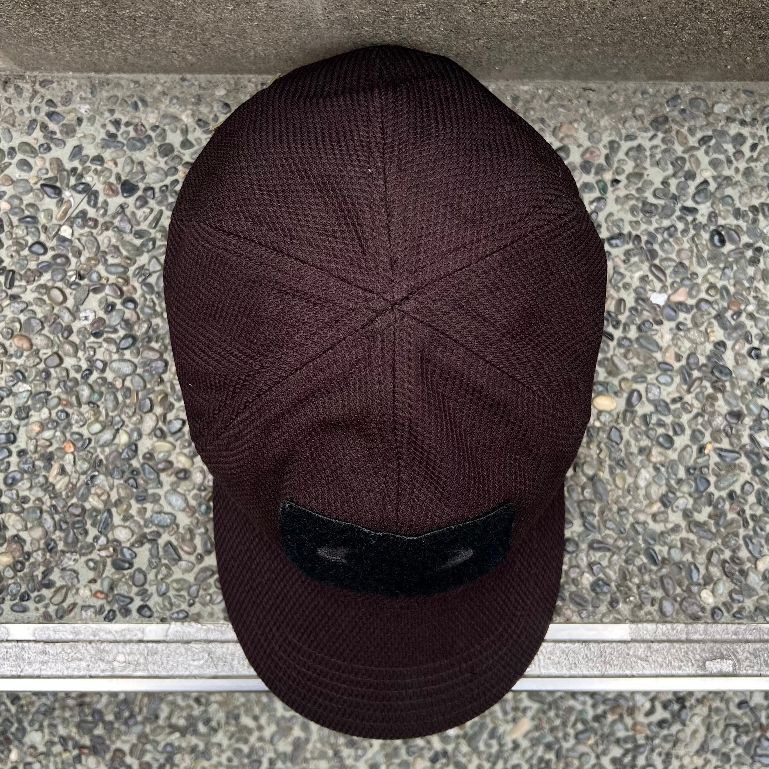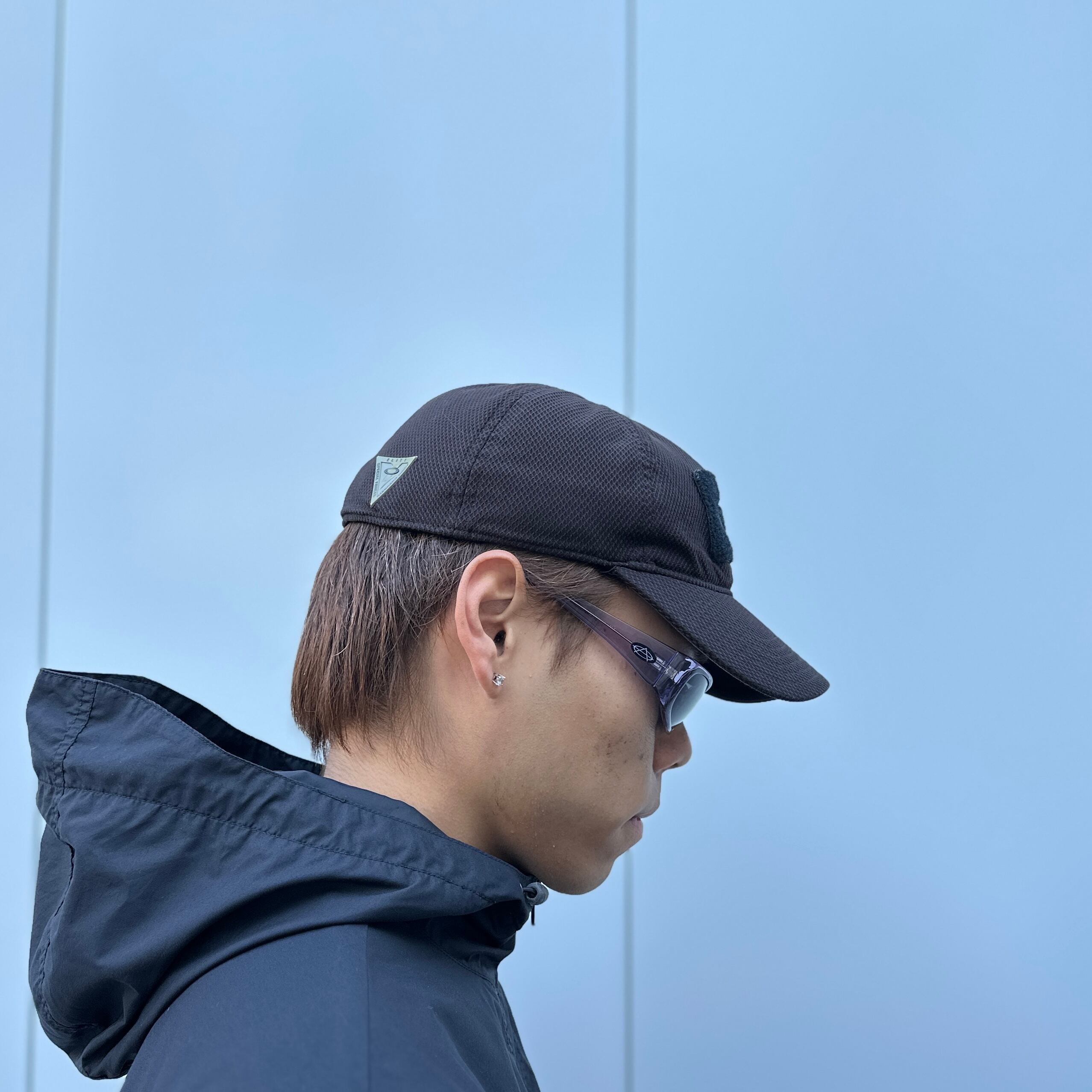 ブラックメッシュのポリエステル系素材、フロントにOロゴワッペン、バックに三角のネームが付いたシンプルなデザインです。