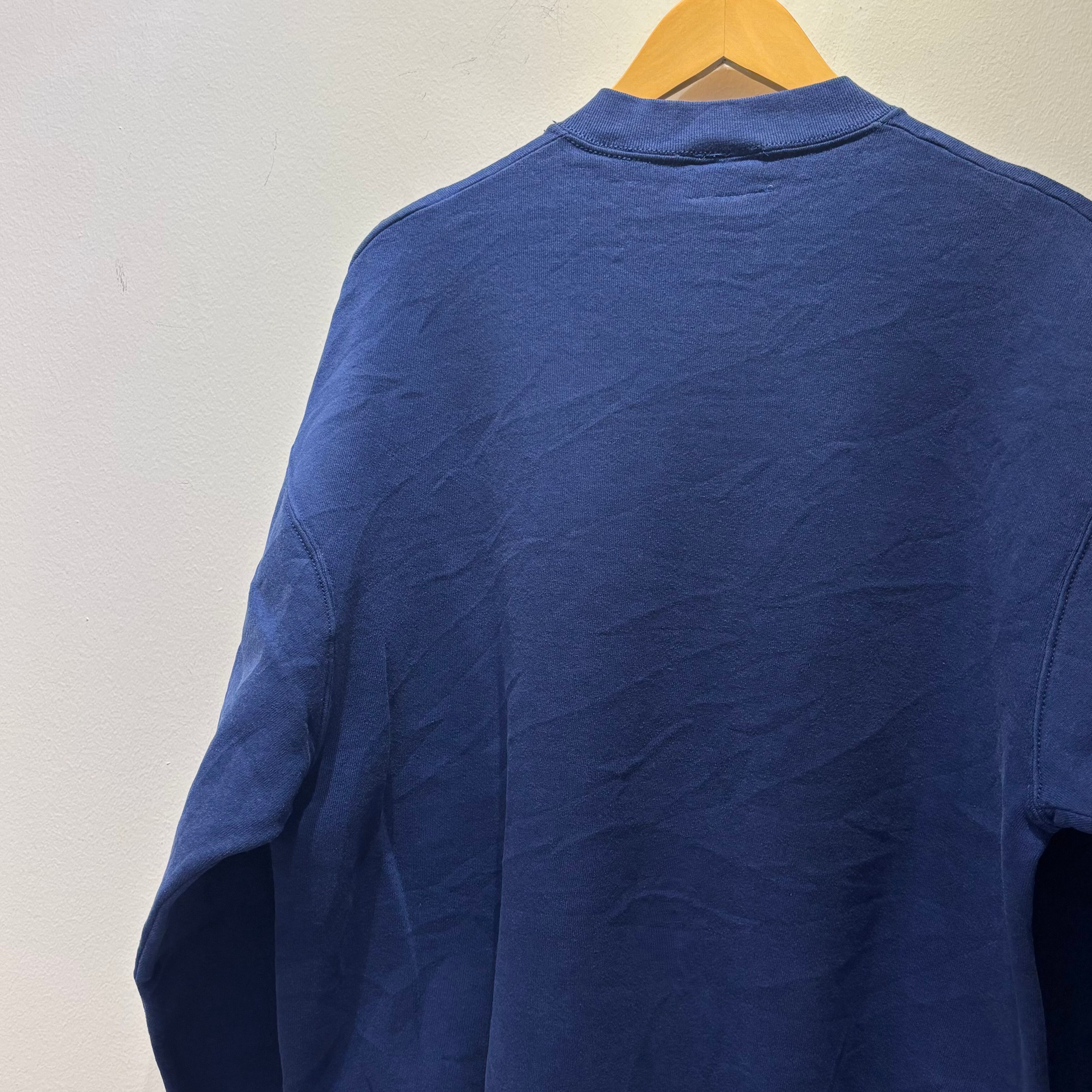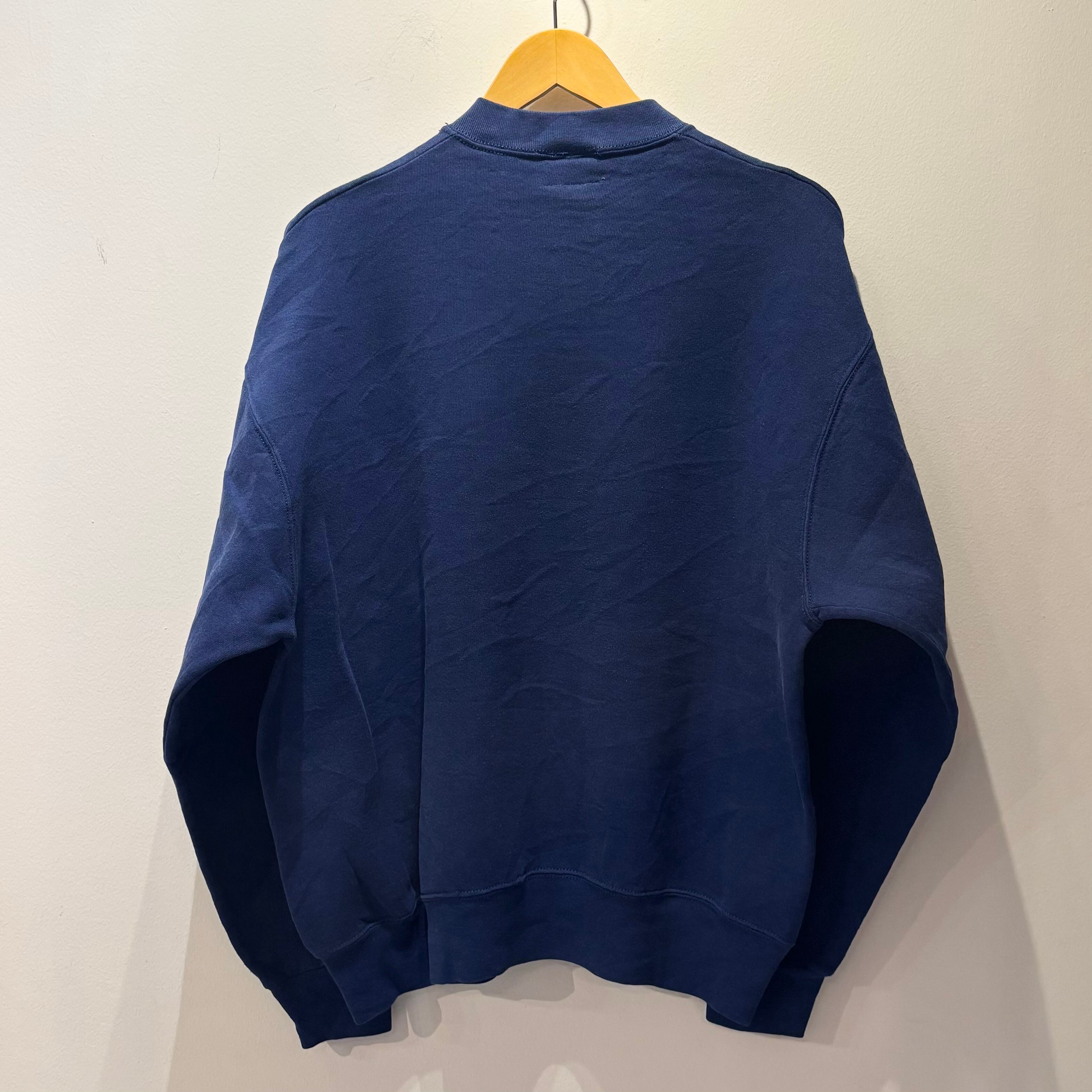 ネイビーの裏起毛素材、フロントに大きくDKNYとDONNA KARAN NEW YORK刺繍の入るデザインです。