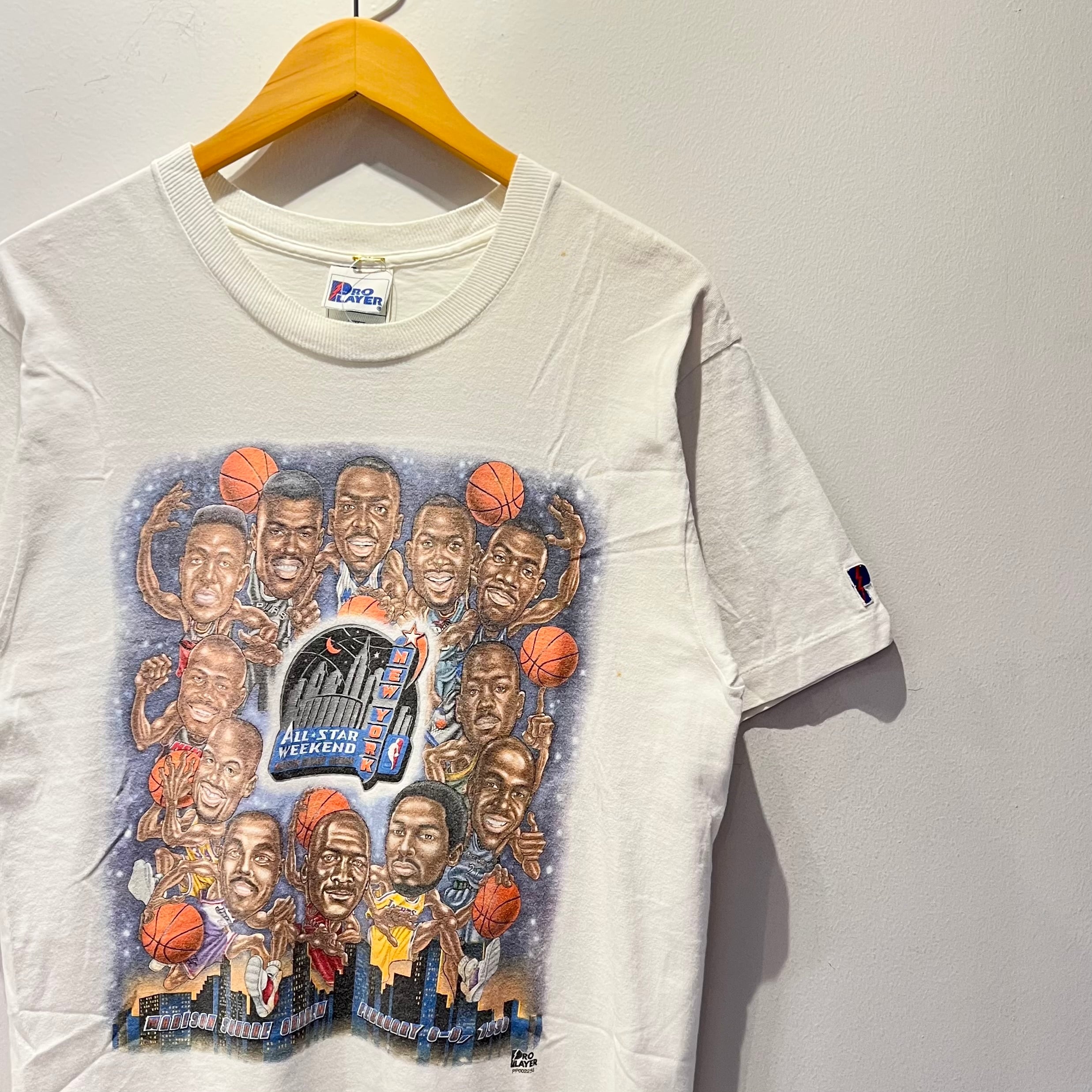 ホワイトのコットン素材、フロントに12人の中心選手のイラスト、ロゴとニューヨークプリント、バックにロゴマーク、EAST、WESTそれぞれのメンバー名プリントのが入る豪華デザインです。