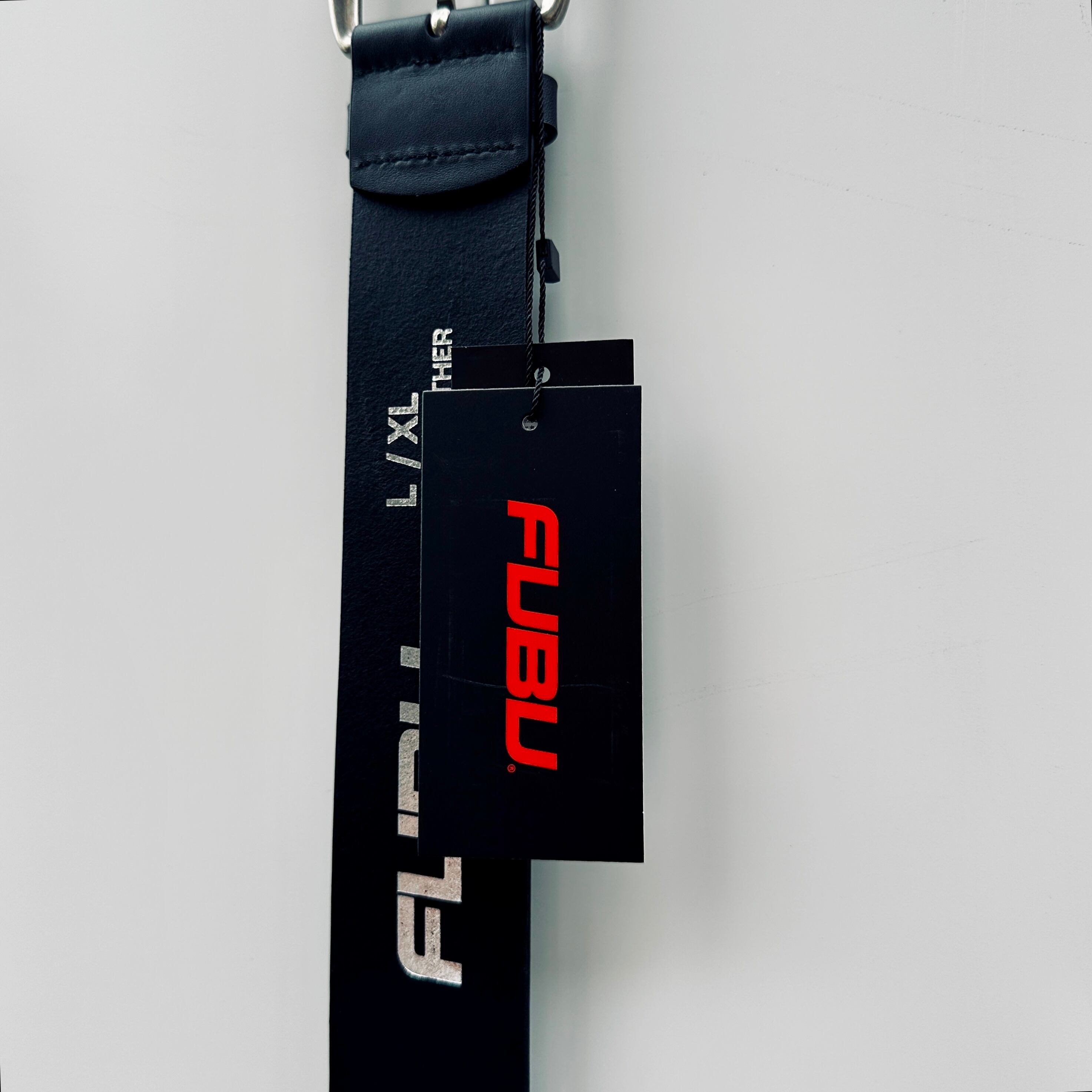 ブラックレザー、スタッズでFUBUロゴ、バックルで固定するスタンダードデザインです。
