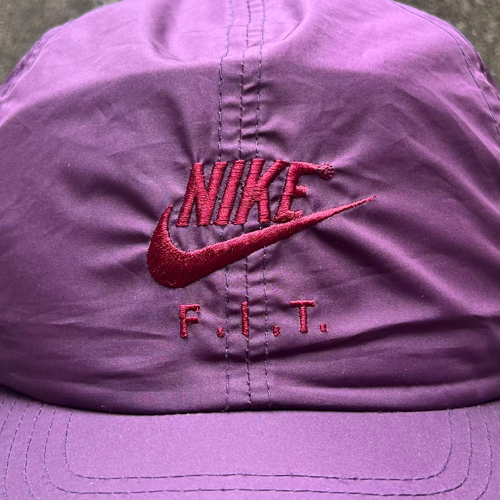 バーガンディのポリエステル素材、フロントにNIKE F.I.T.ロゴ刺繍、6パネル、スナップバックアジャスターを使用したスタンダードデザインです。