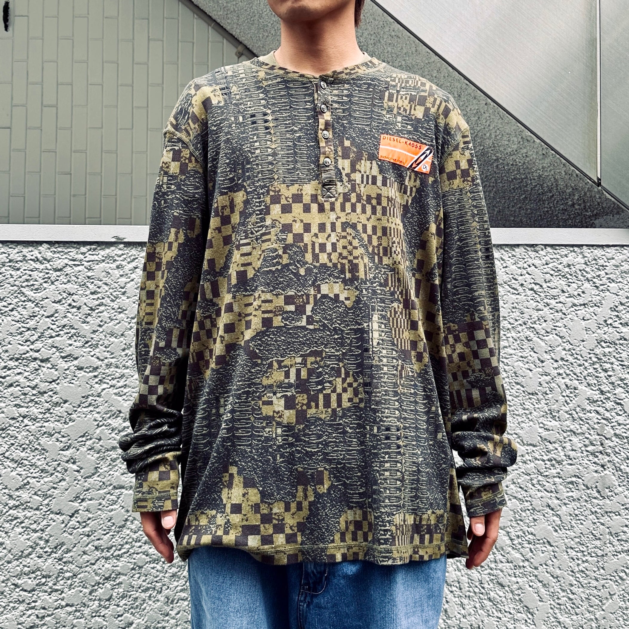00年代、ディーゼルのヘンリーネック総柄サーマルロングスリーブになります。