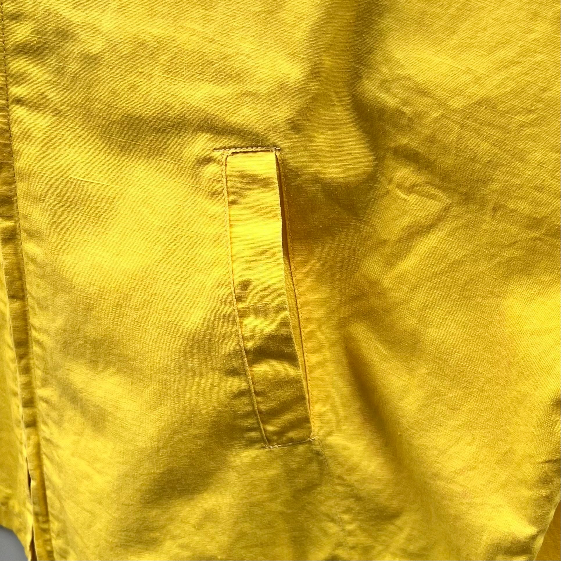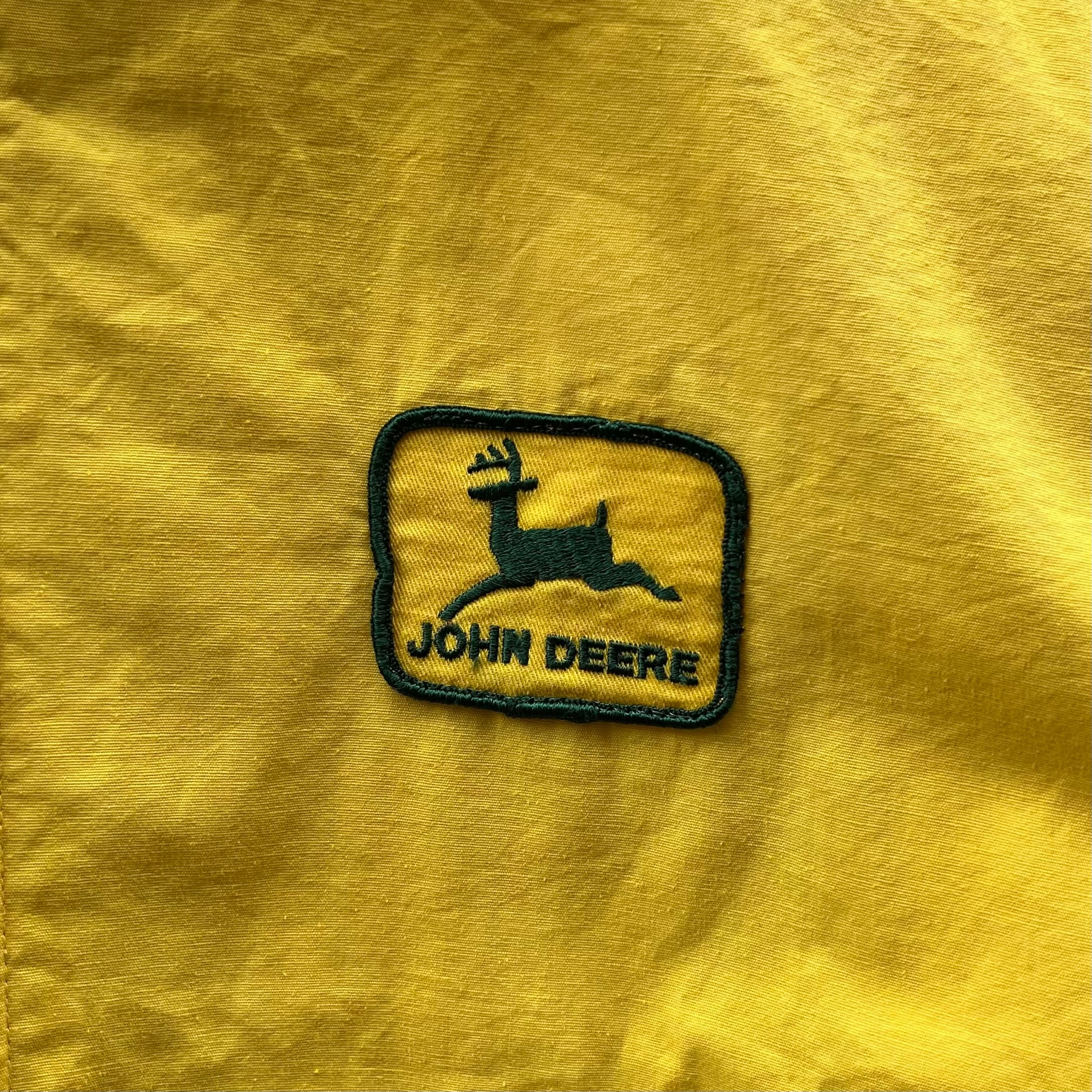 イエローのコットン系素材、左胸にJOHN DEERワッペン、SWIFTのステンレスジッパーが付いたスウィングトップ型デザインです。