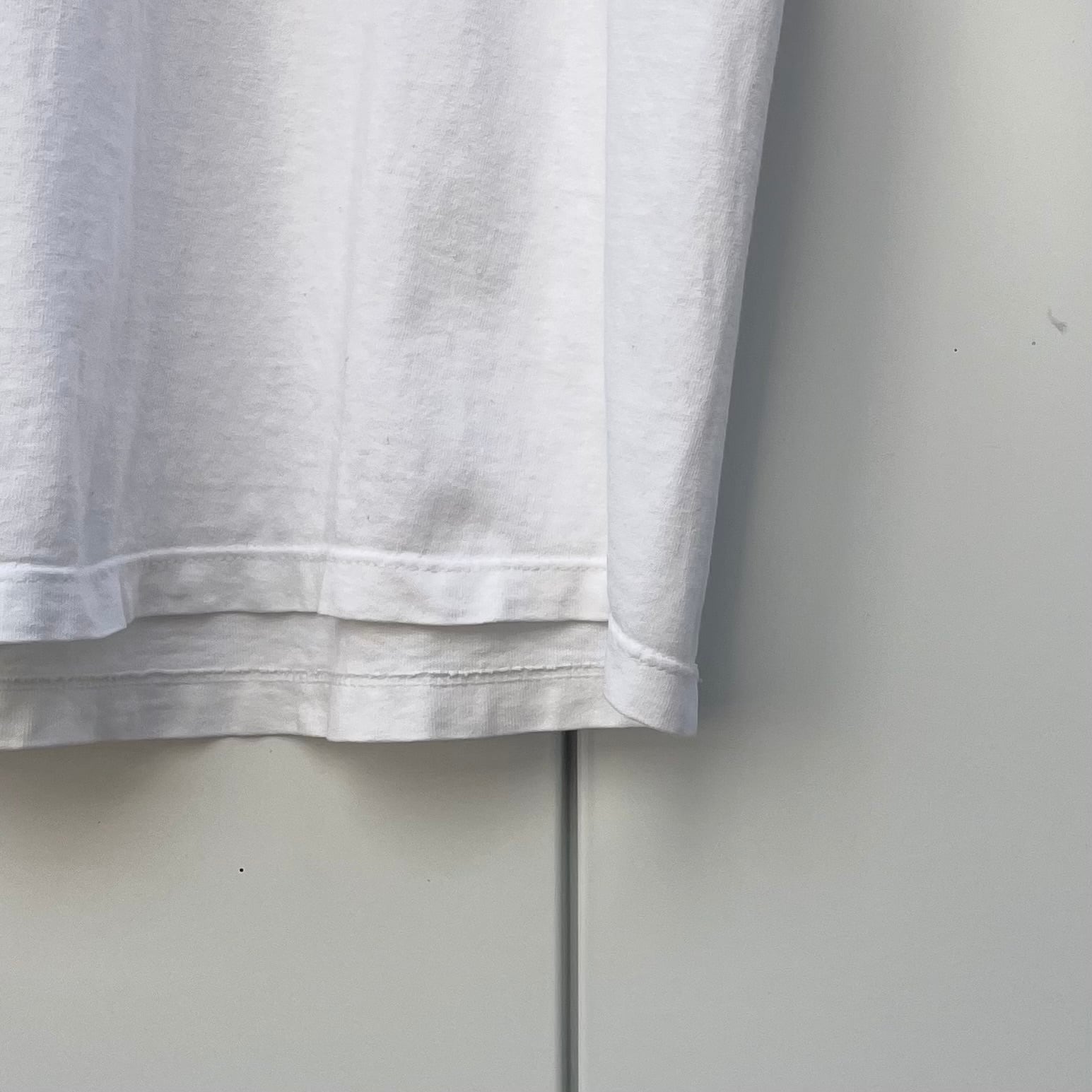 ホワイトのコットン素材、左胸にロゴプリント、バックにロゴ入りのバイクのグラフィックプリントの入るデザインです。