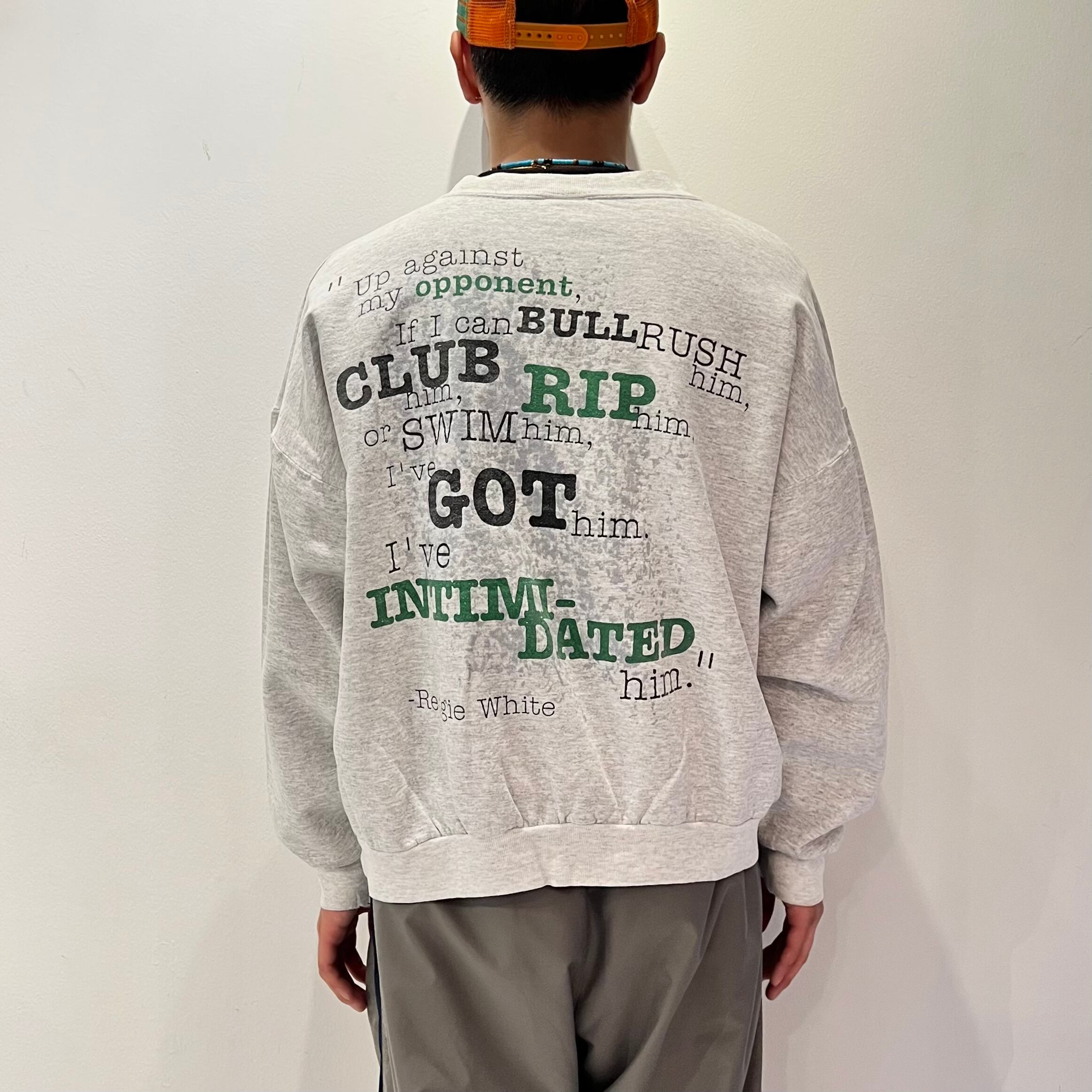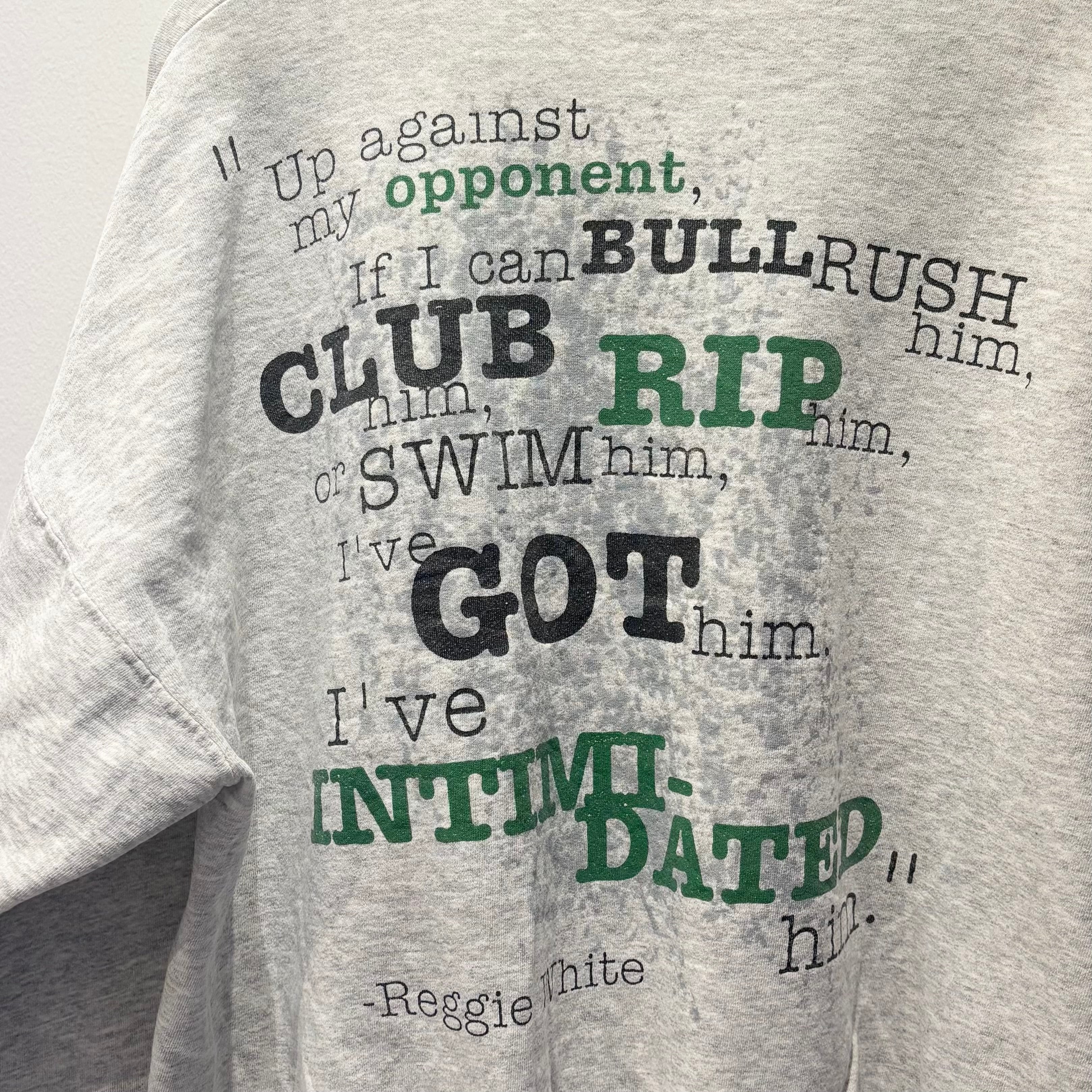 ・バックに大きくメッセージ、Reggie Whiteプリント