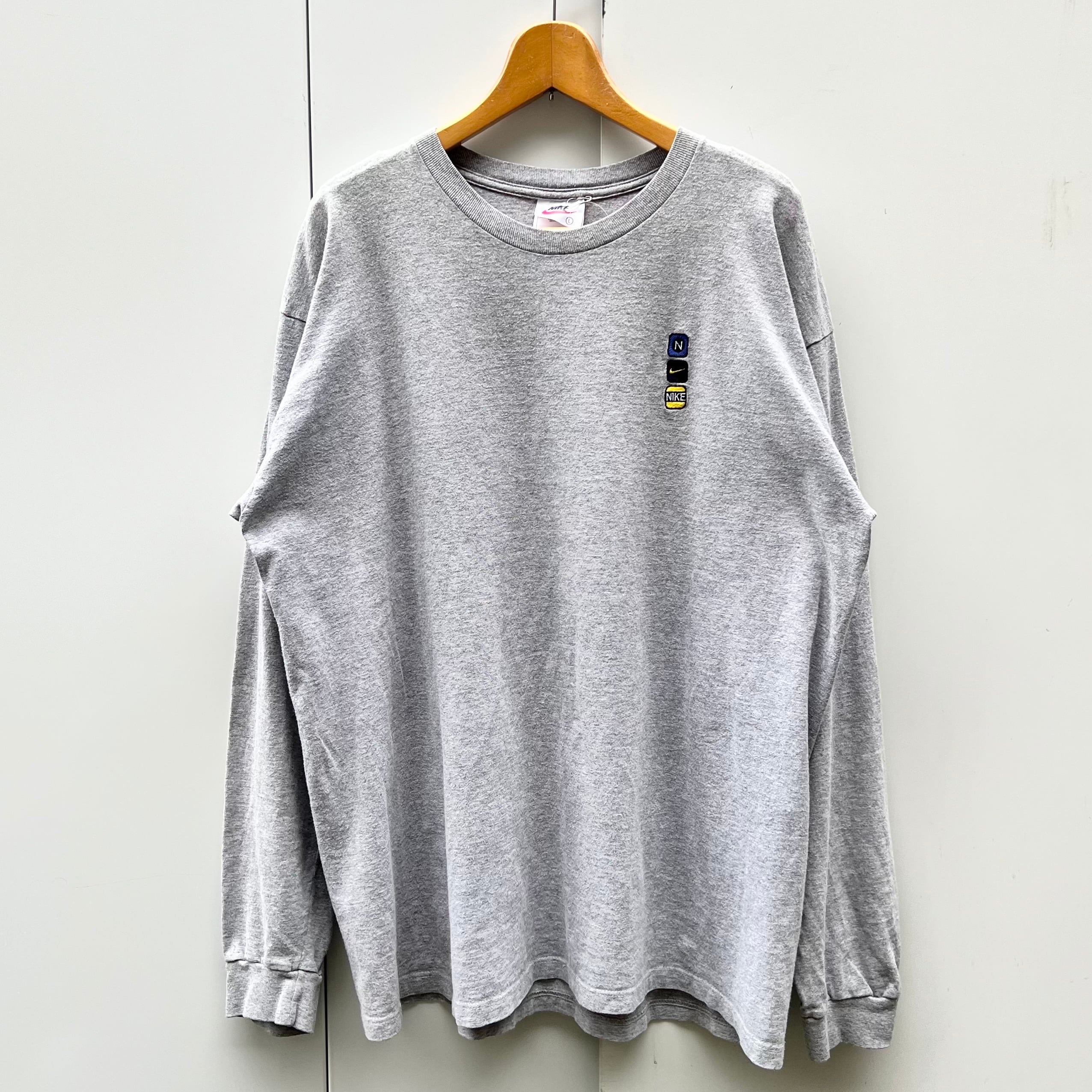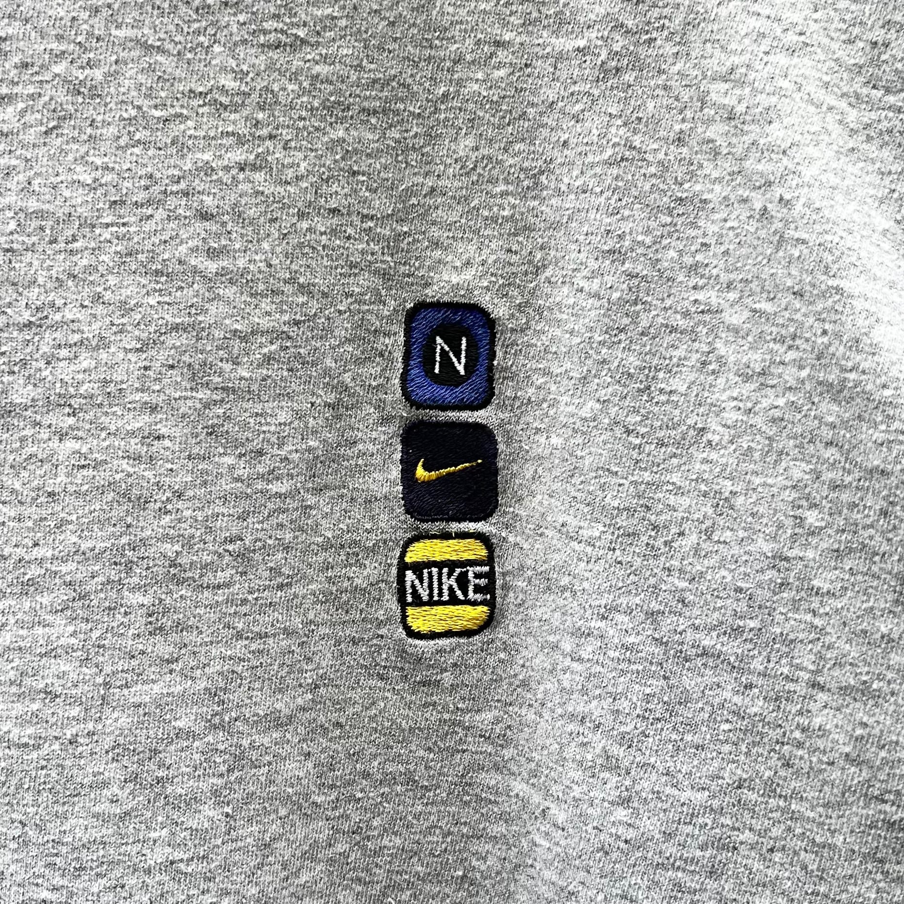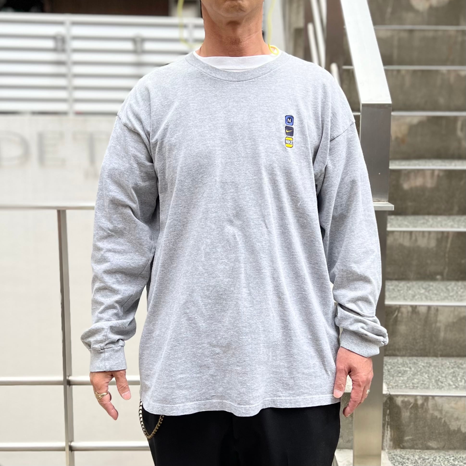 グレーのポリエステル混素材、左胸にN、スウォッシュ、NIKE刺繍が入るシンプルデザインです。