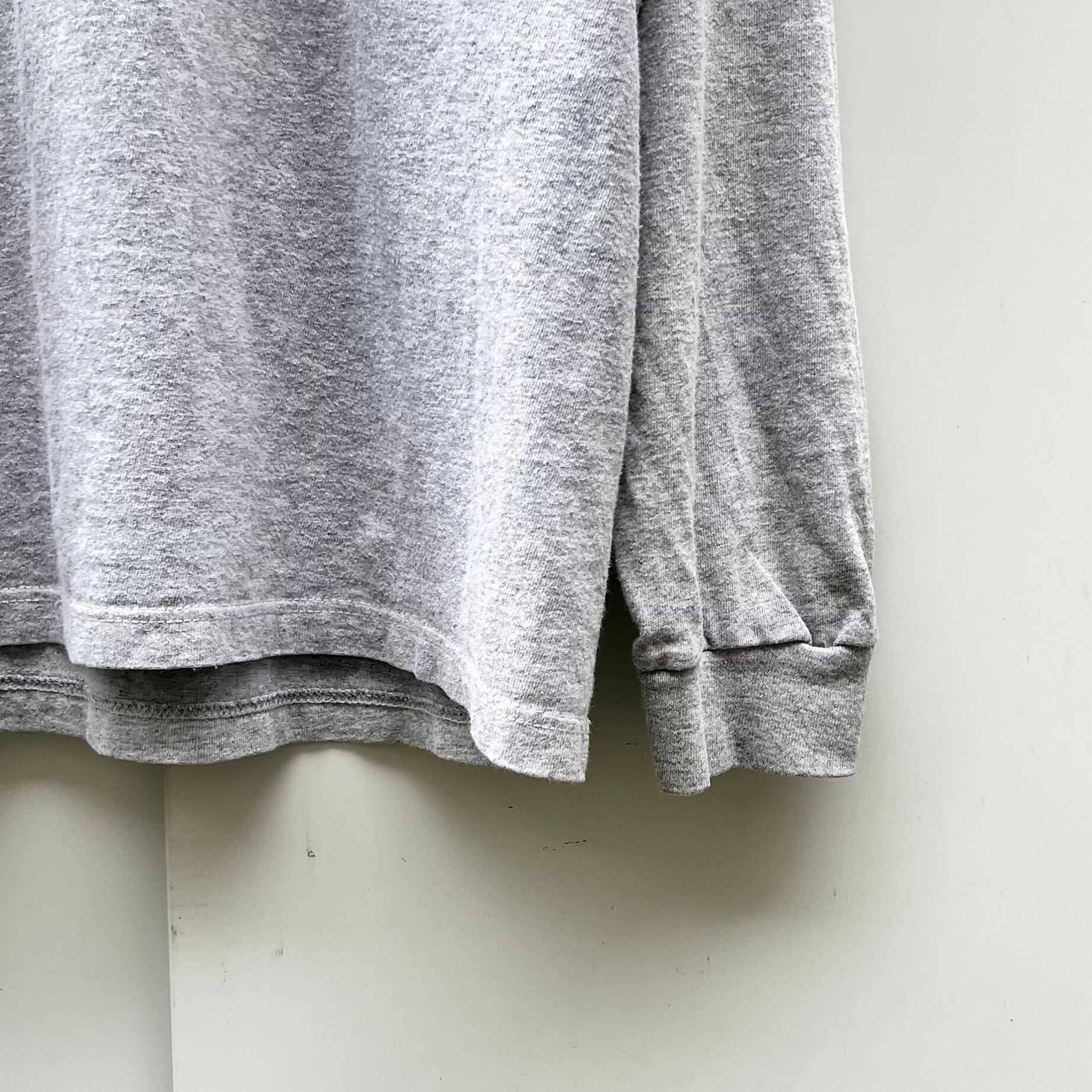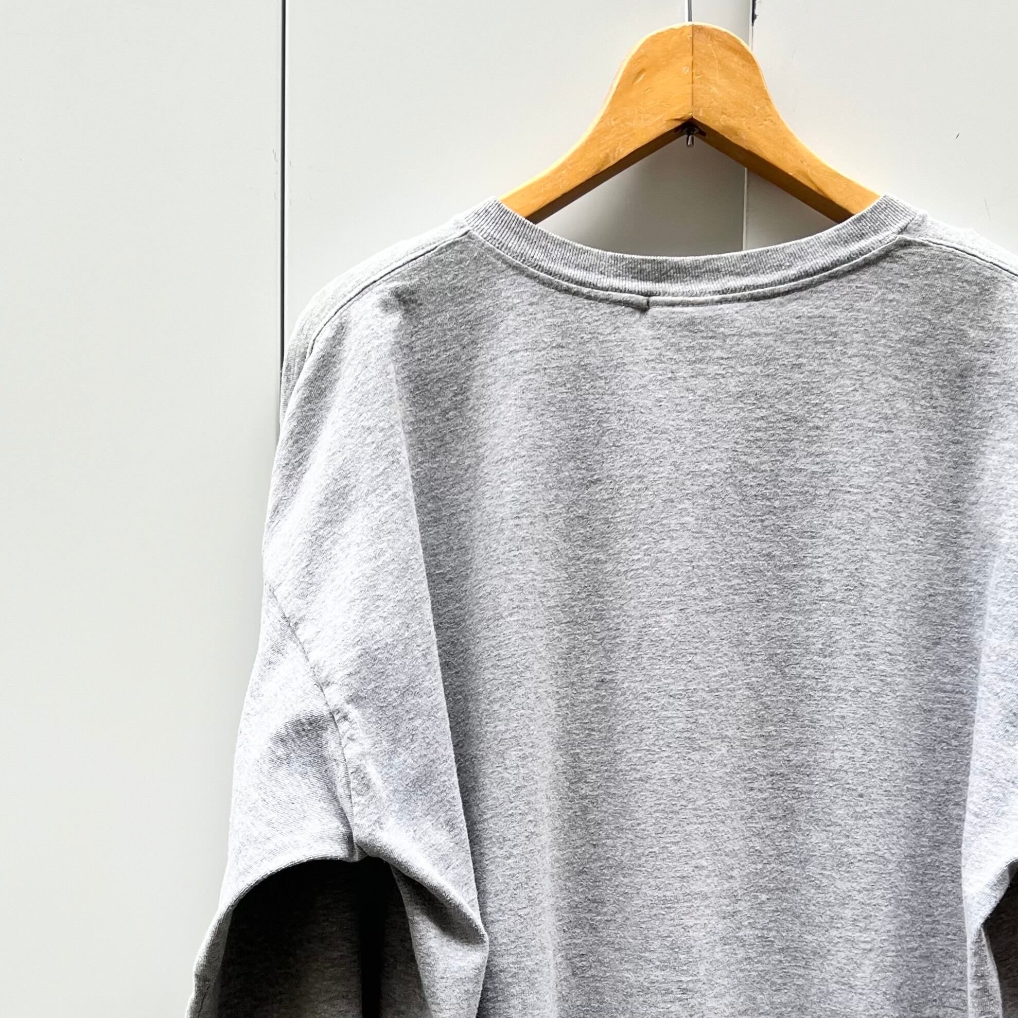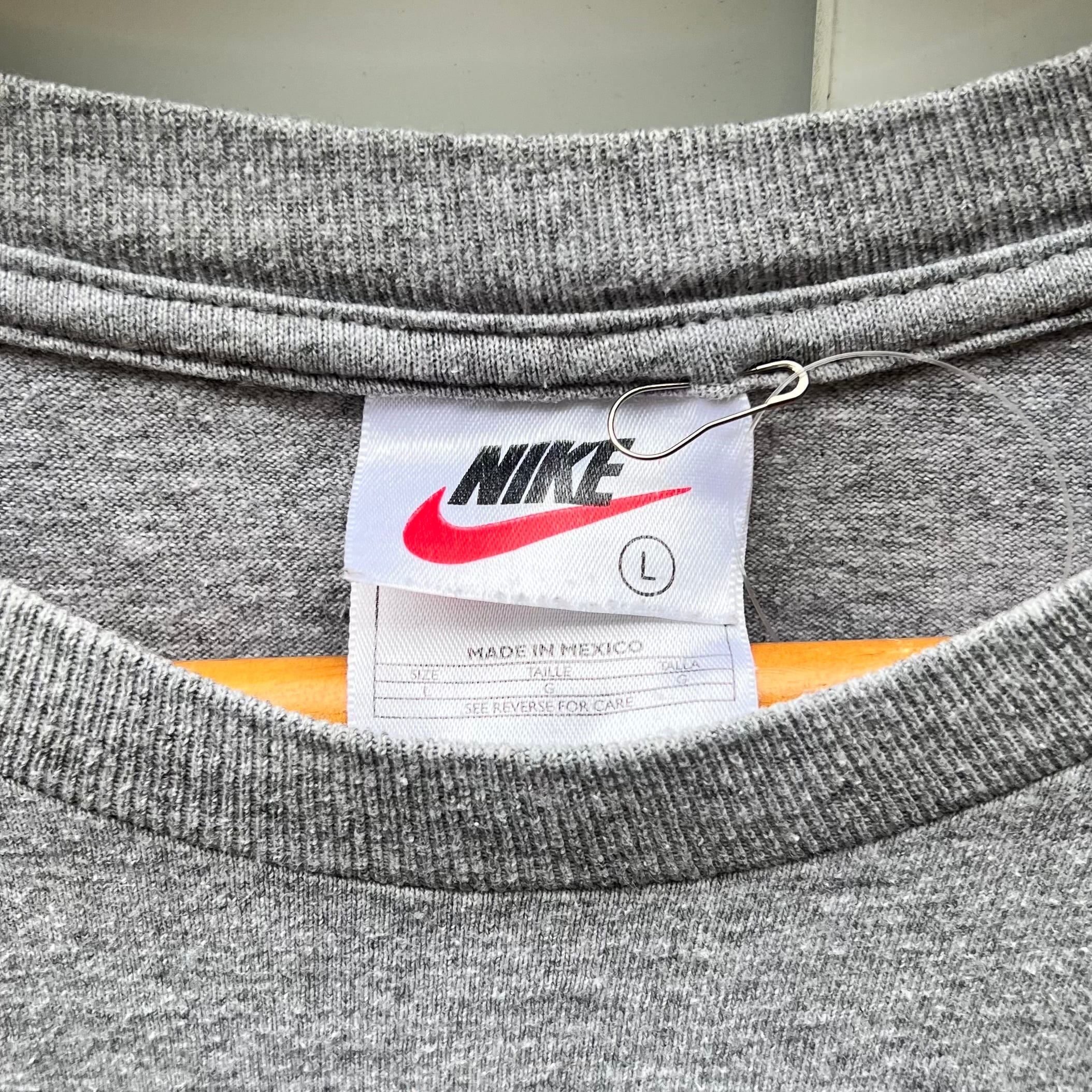 グレーのポリエステル混素材、左胸にN、スウォッシュ、NIKE刺繍が入るシンプルデザインです。