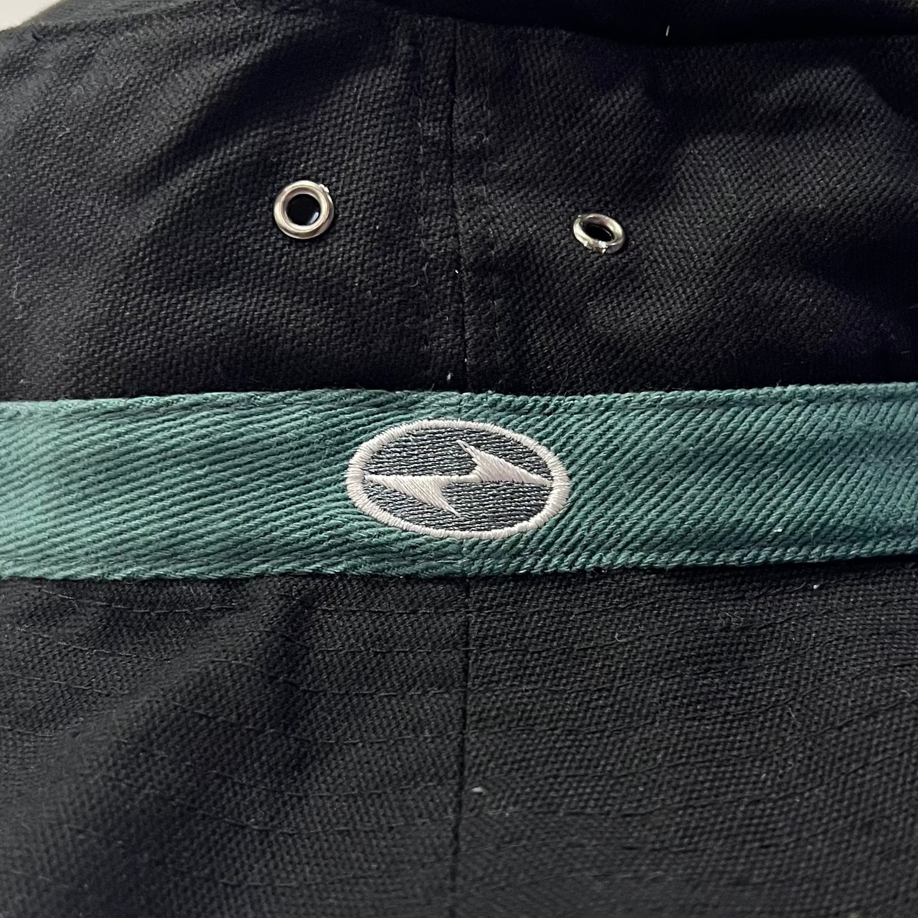 ブラックxグリーンのコットン素材右サイドにスウォッシュ、左サイドにタイガーウッズロゴマーク刺繍、両サイドに通気アイレットの付いたシンプルデザインです。