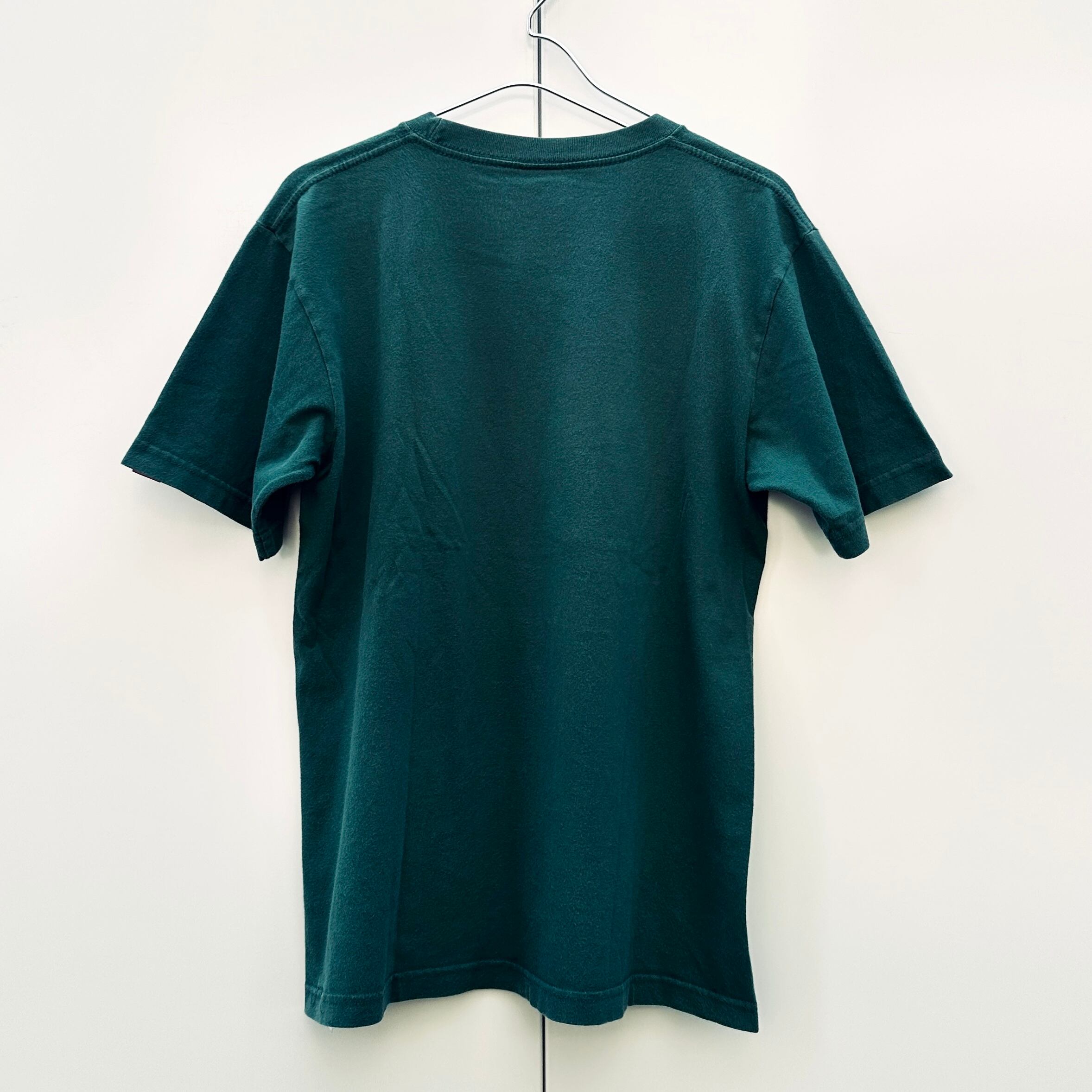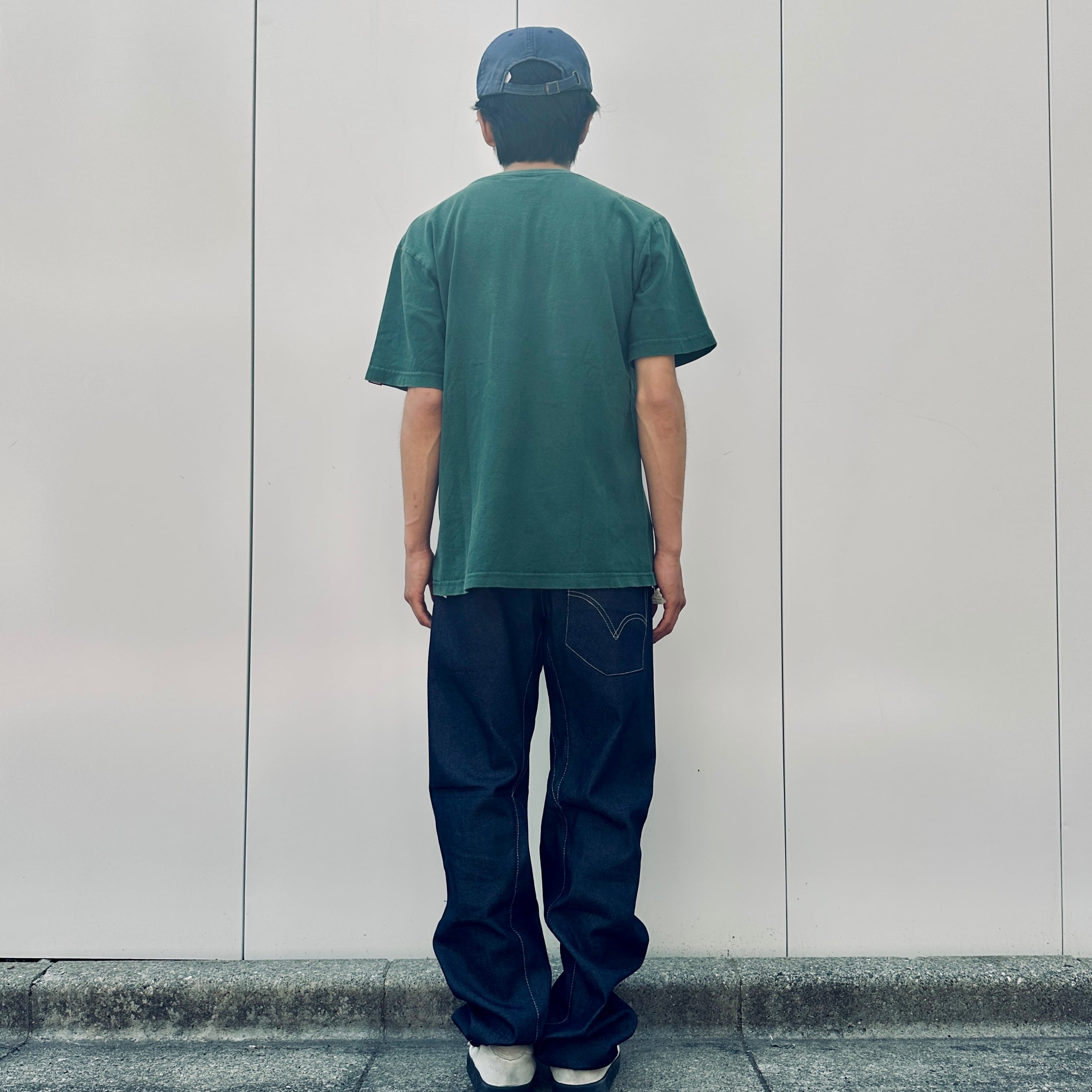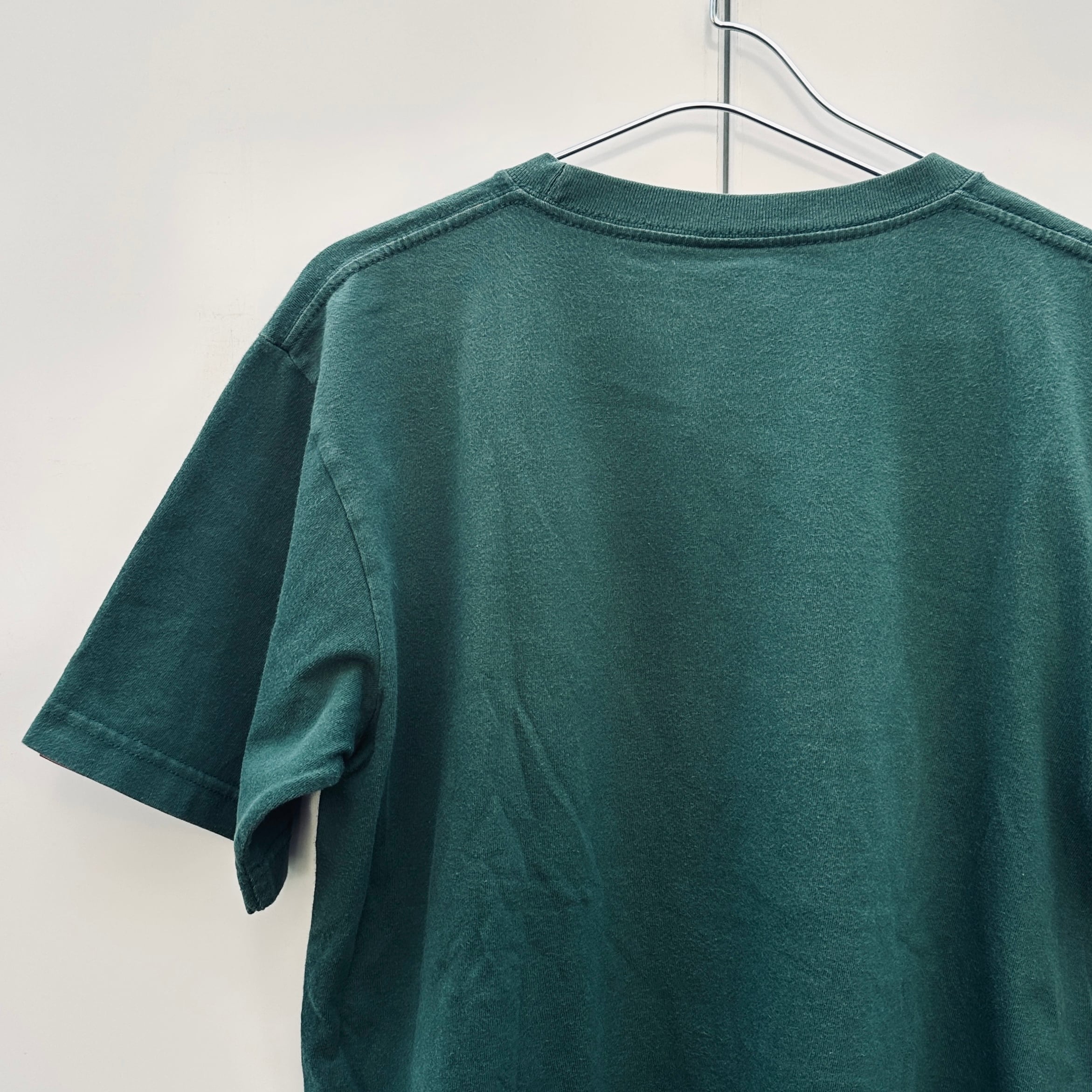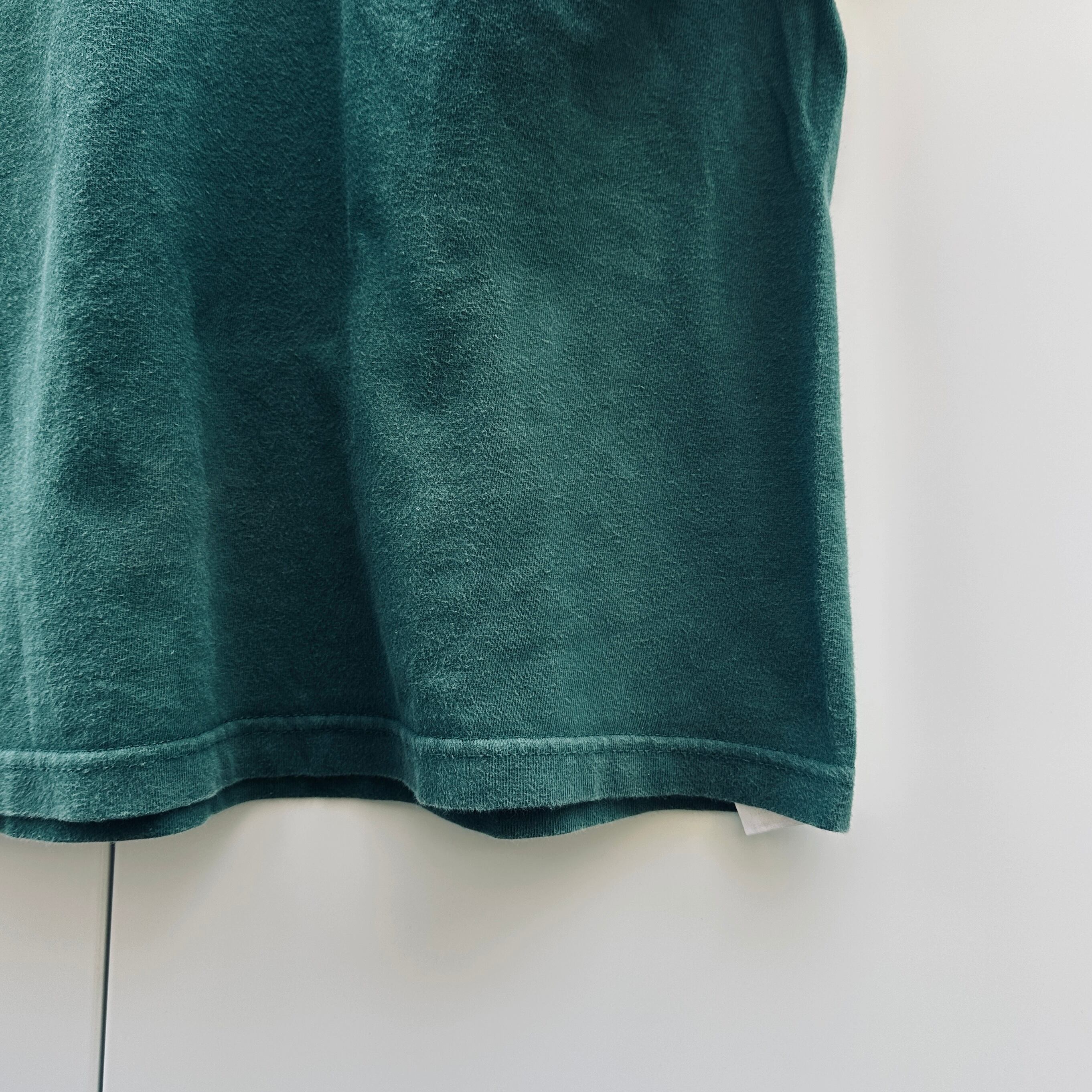 グリーンのコットン素材、フロントにロゴがプリント、左袖にピスネームの付いたシンプルデザインです。