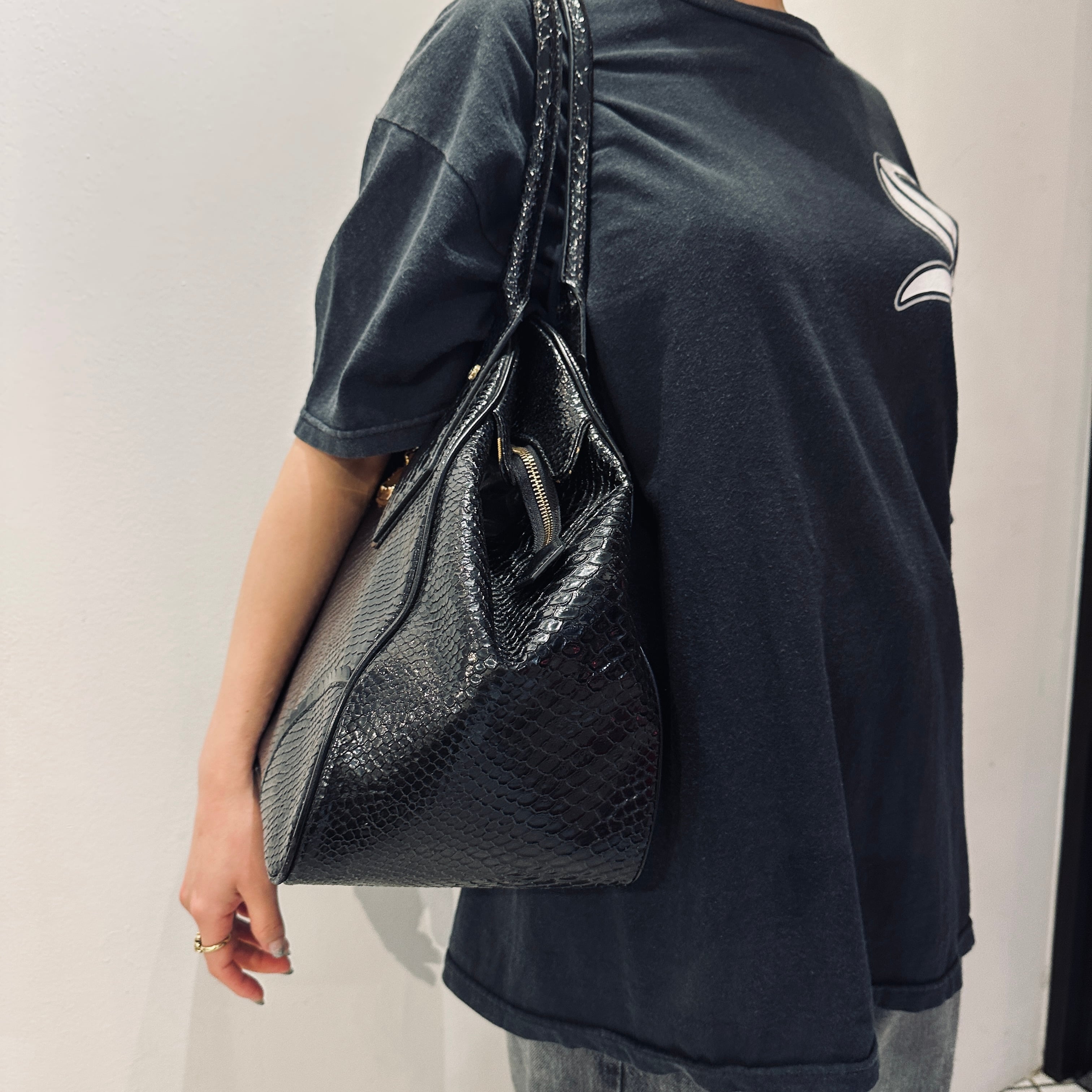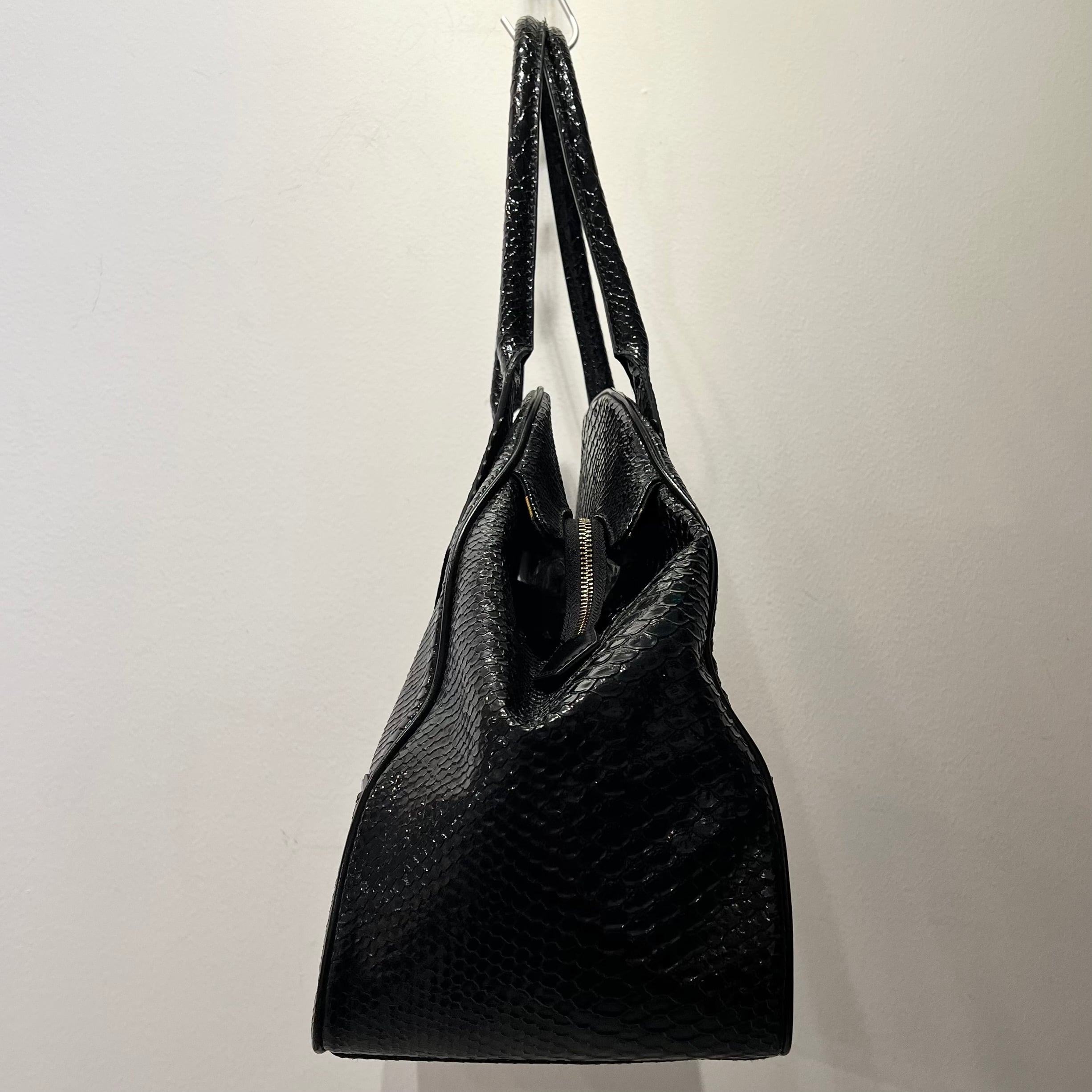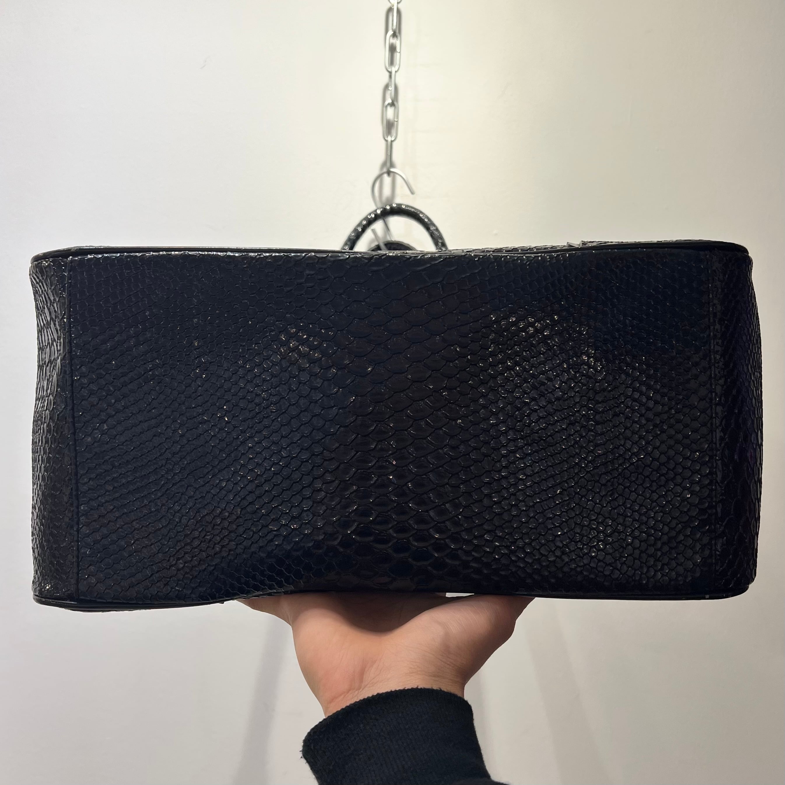 ・ブラックのクロコ柄型押しエナメル