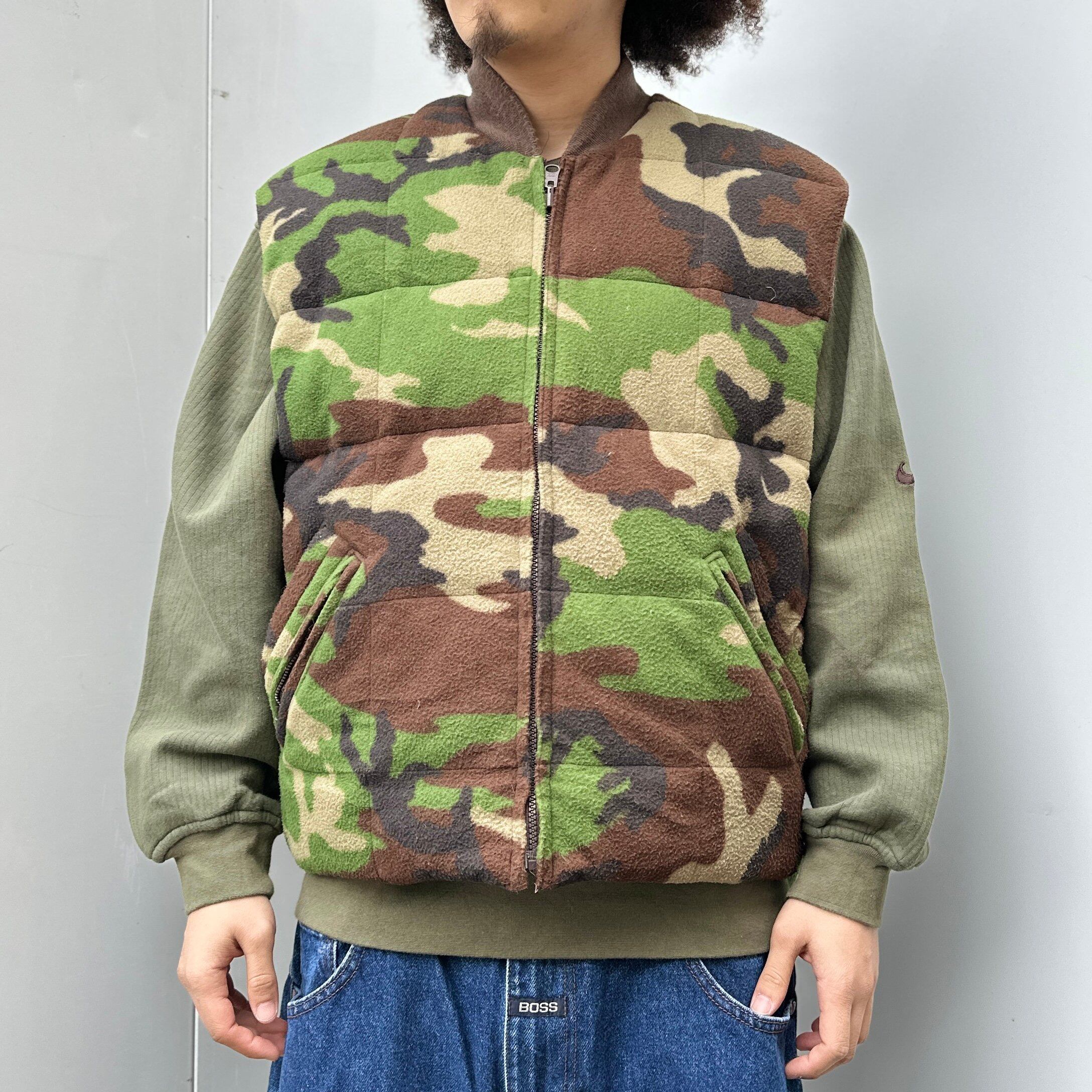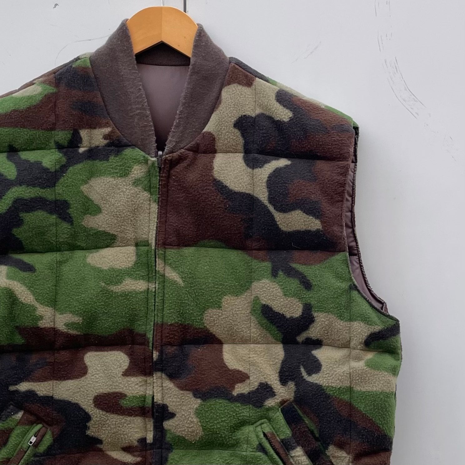 ウッドランドカモフリースxブラウンナイロンのリバーシブル、両面ハンドウォームポケット、ロゴなどの装飾の無いシンプルデザインです。