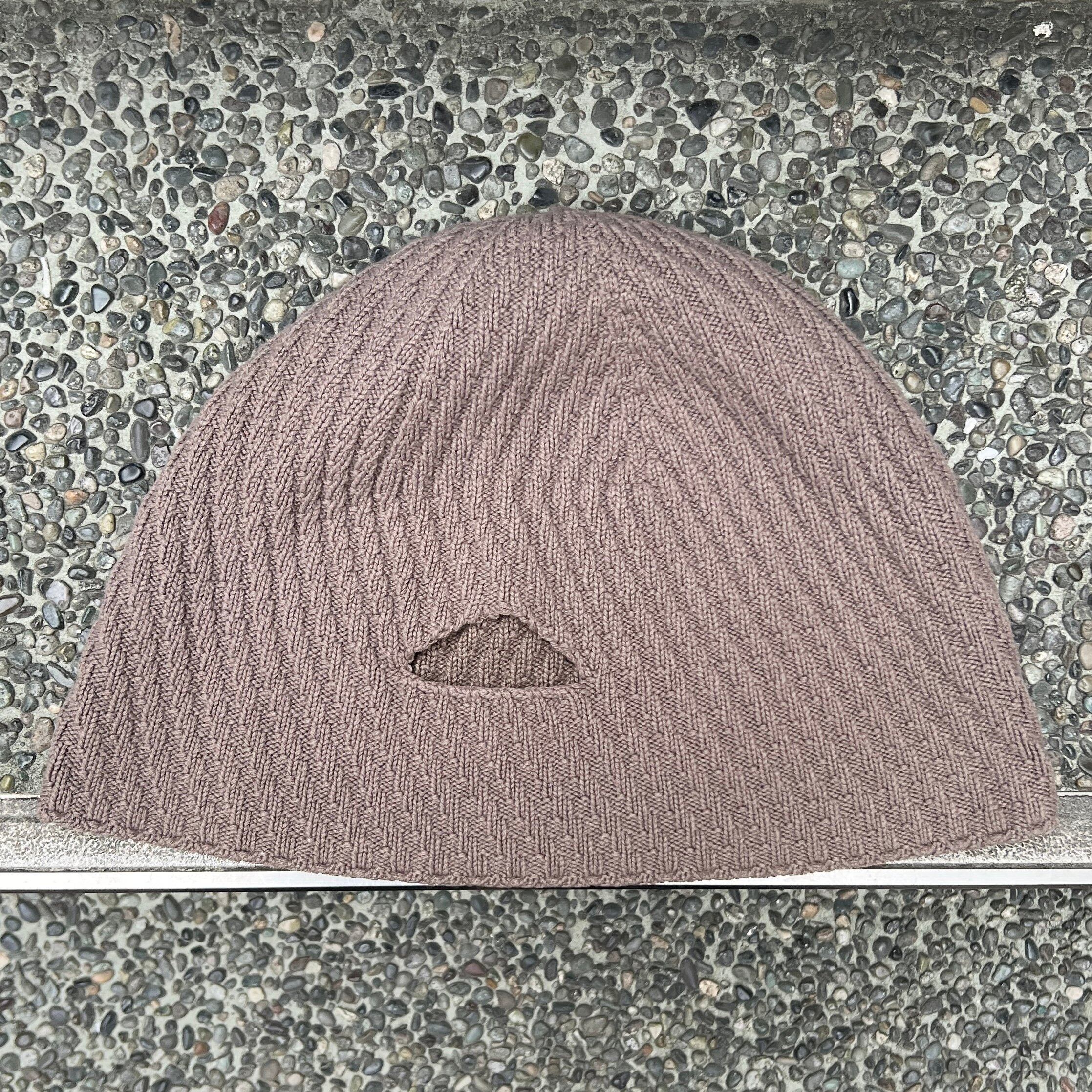 穴は用途不明のデザインで、かなり大き目の深く被るスタイルとしてご使用いただけます。