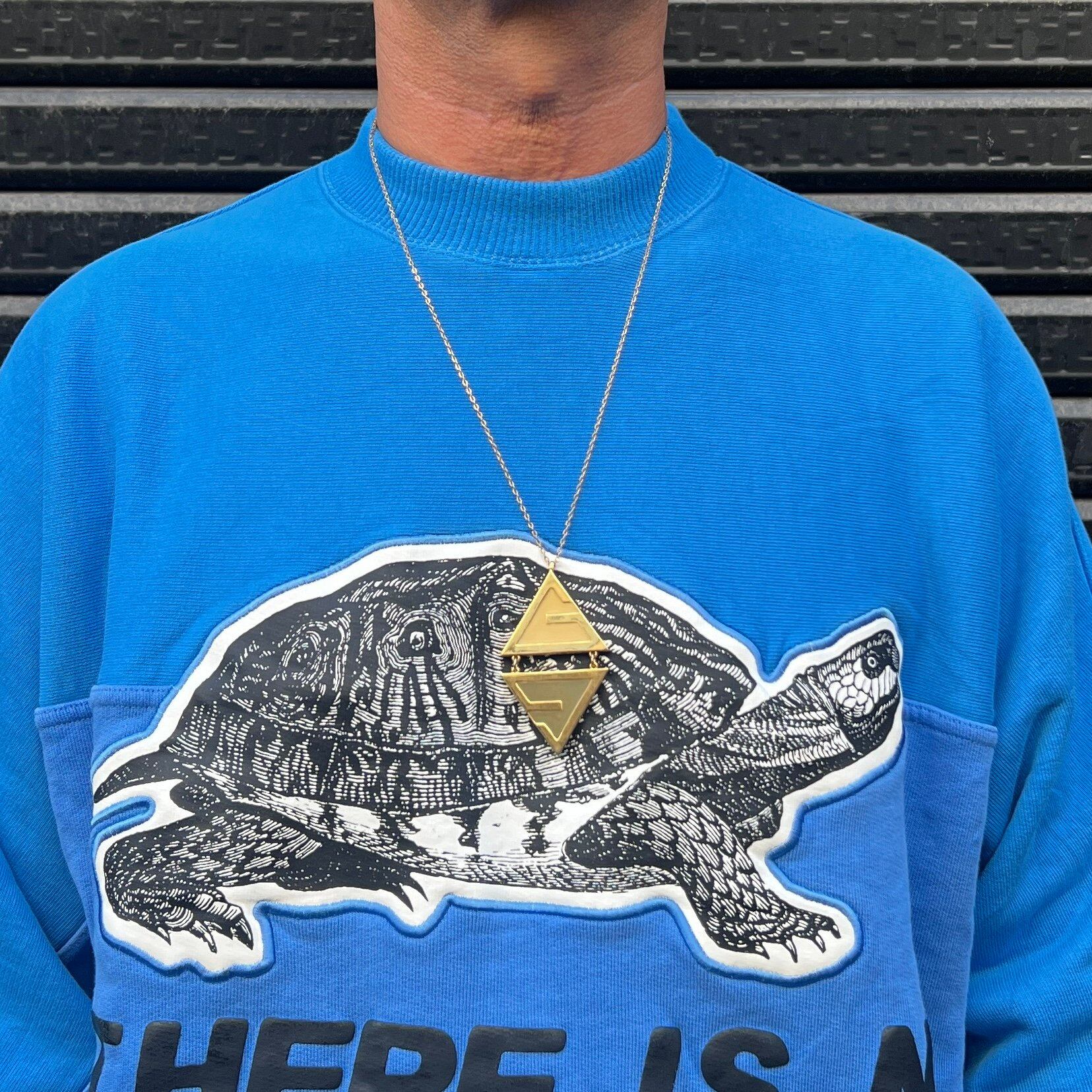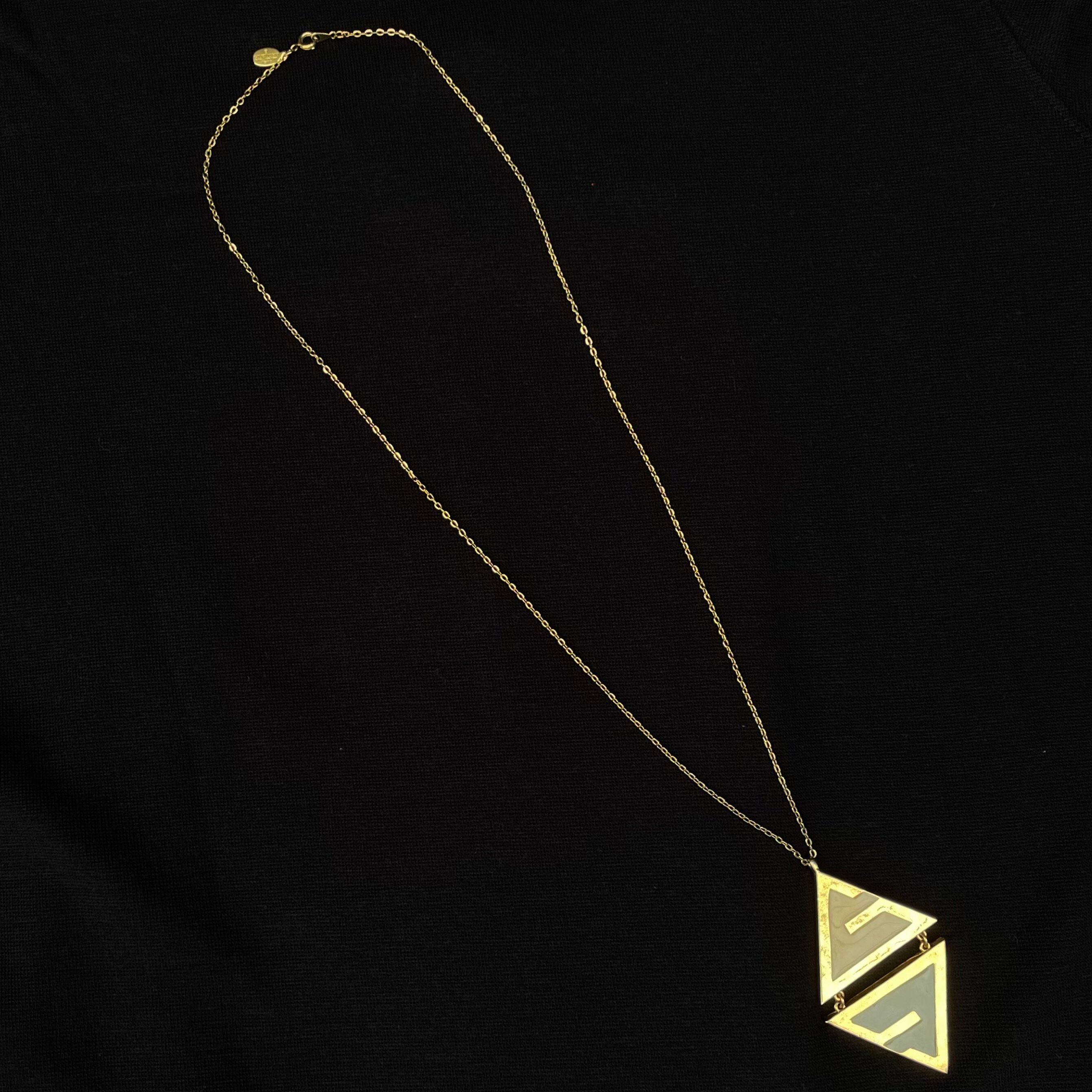 ゴールドカラーの細目のチェーン、トップに2つのトライアングルのジバンシィロゴトップが付いた存在感のあるデザインです。
