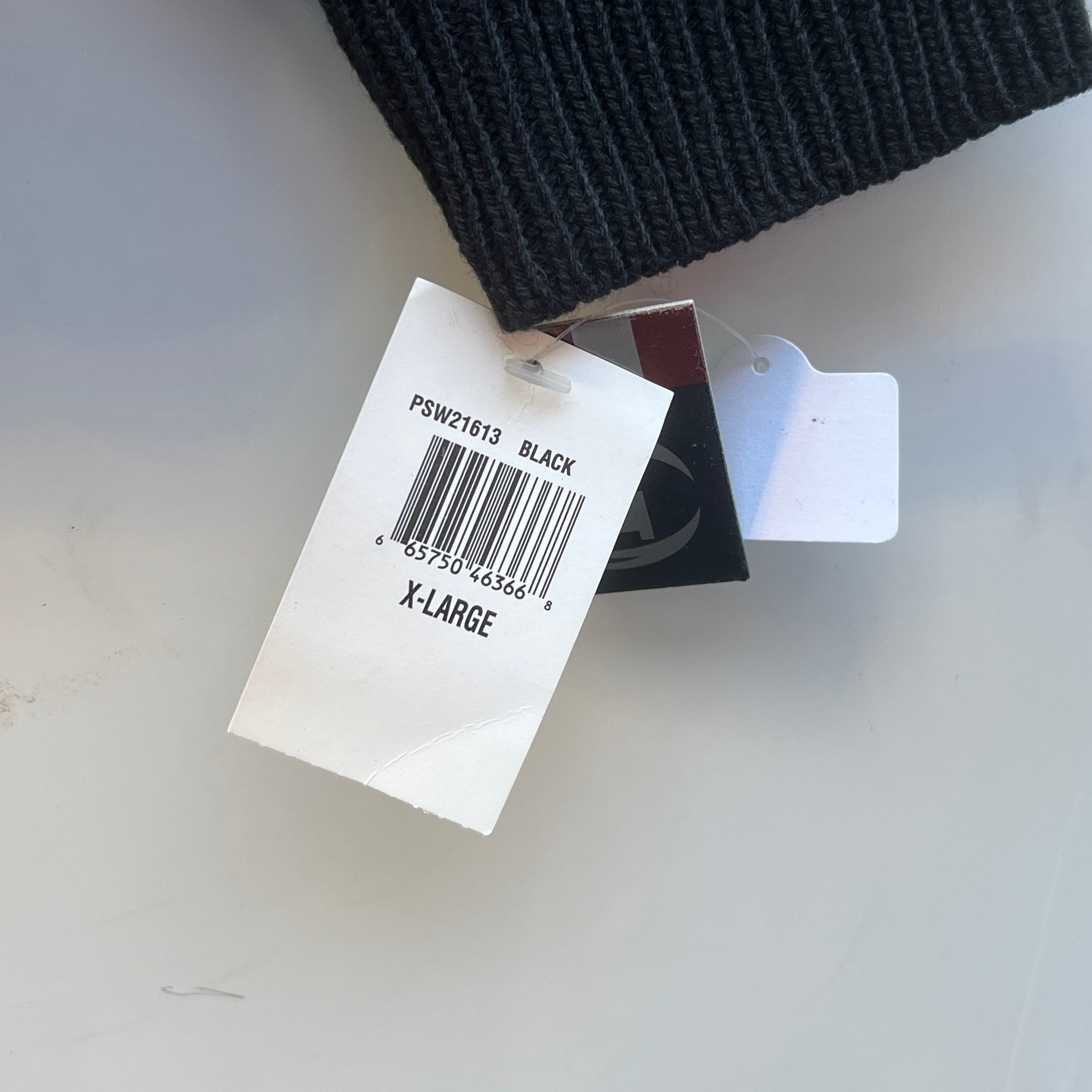 ブラックアクリル混素材、フロントにロゴとロゴネーム刺繍、左裾にピスネーム、バック襟元にネーム、クルーネックのスタンダードデザインです。