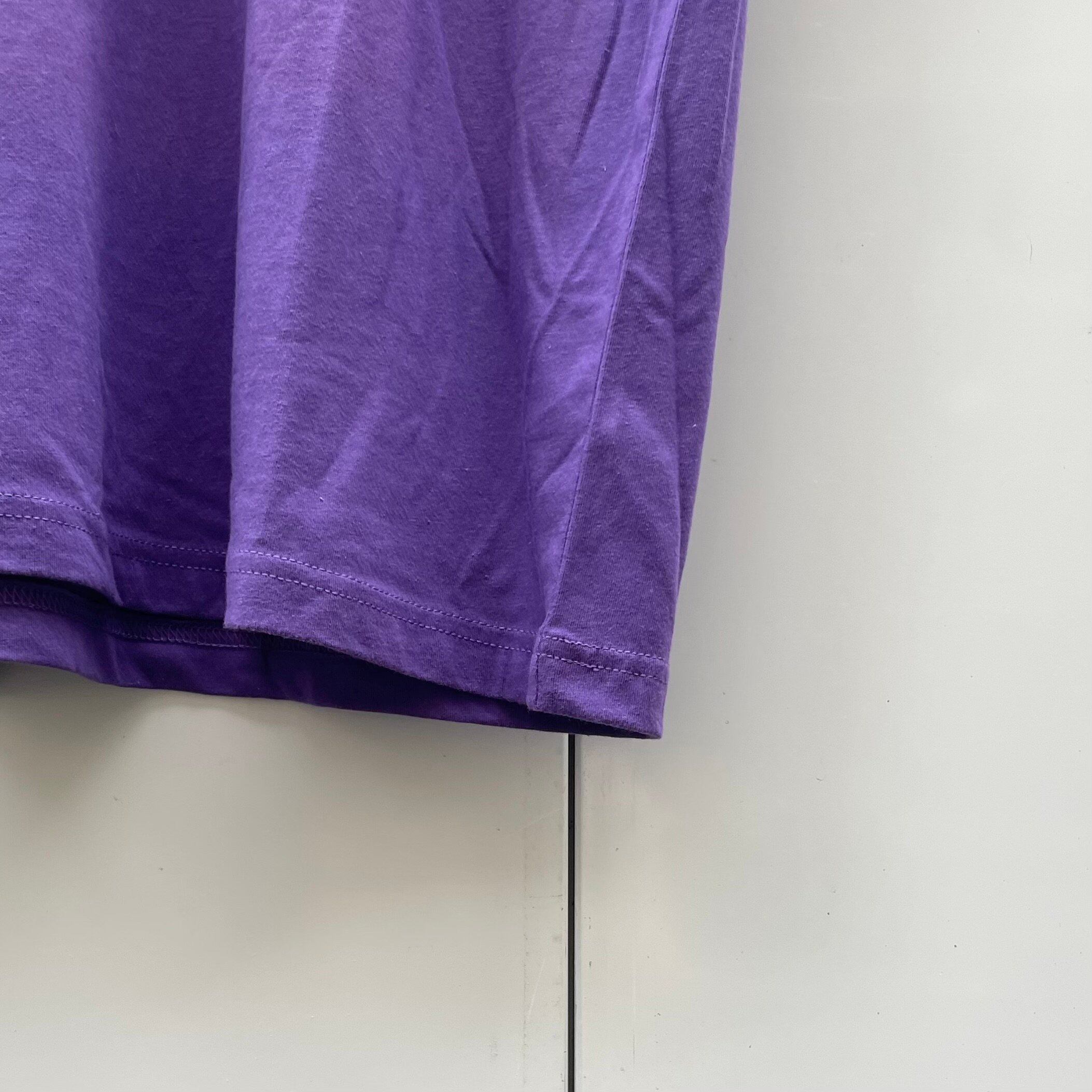 パープルのコットン素材、フロントにジョンソン本人のグラフィックがプリントされたデザインです。