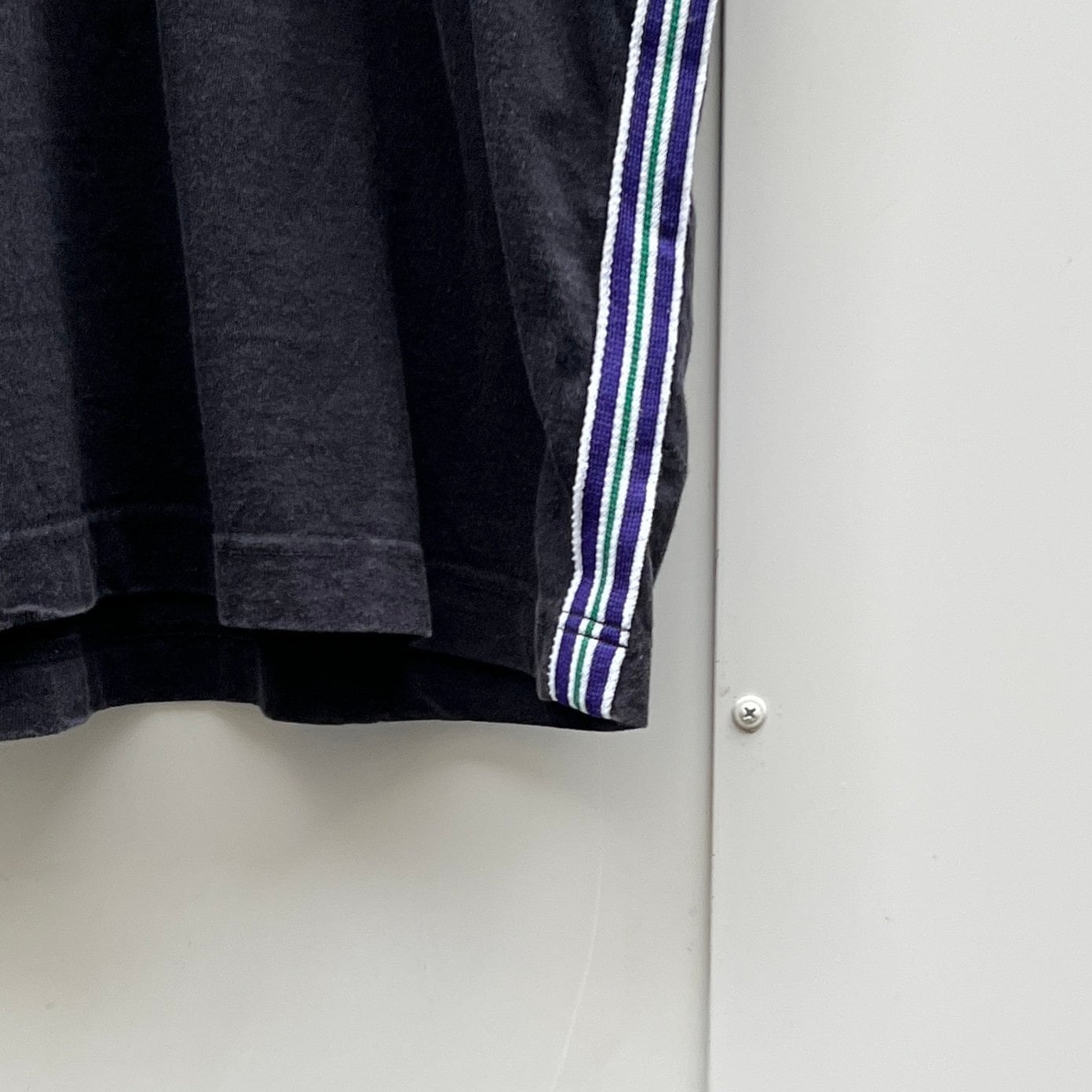 ブラックの天竺素材、脇からサイドにかけてライン入りのテープが付いたデザインです。