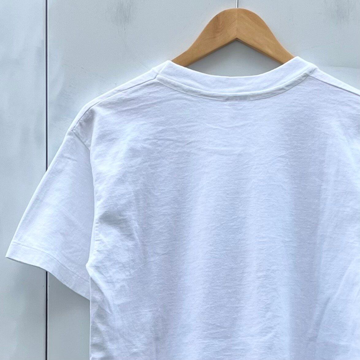 ホワイトのコットンボディ、フロントにプリント親指モチーフのグラフィックプリントが入るシンプルデザインです。