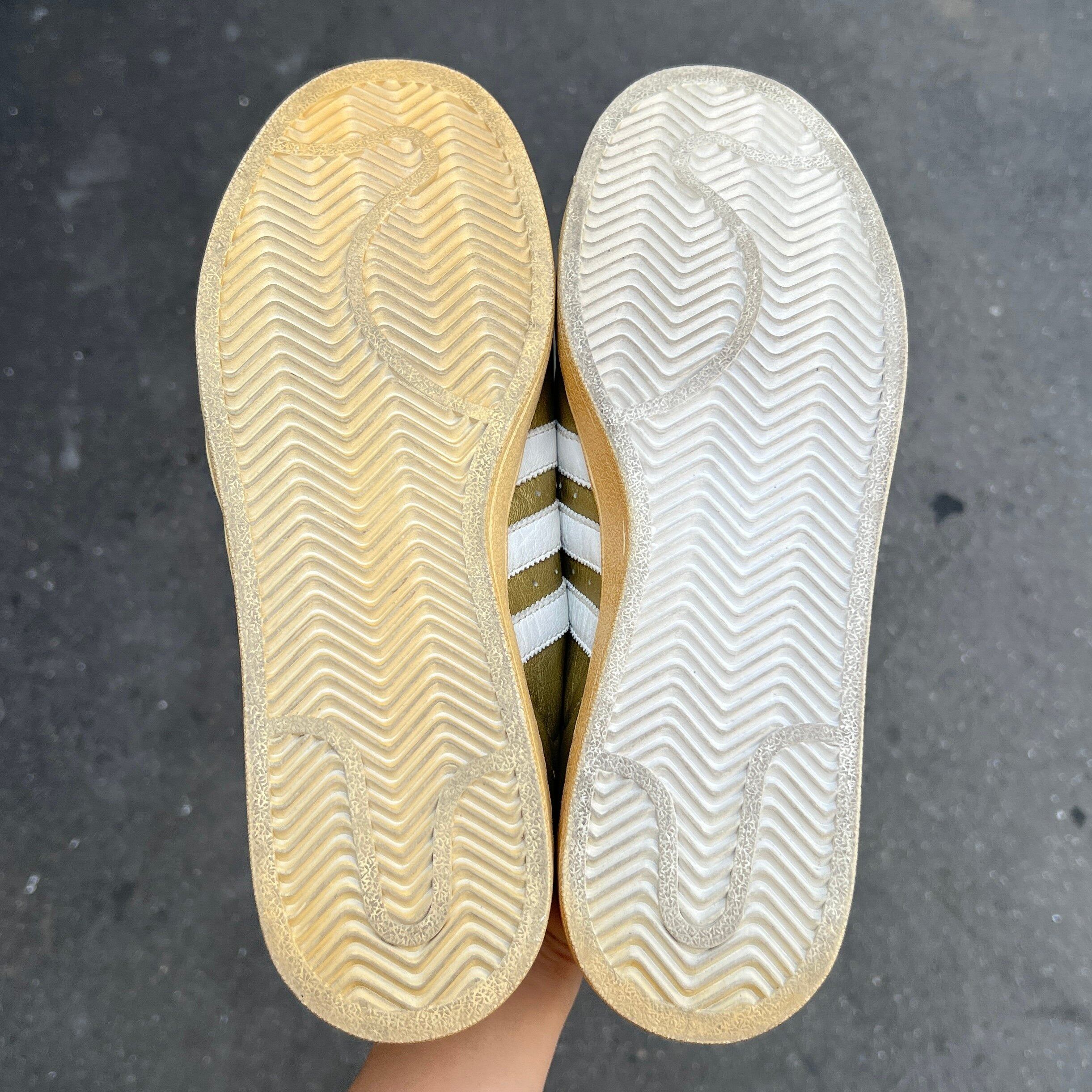 紐が欠損、全体にヨゴレ、日焼けが見られます。その他、着用感はあまりなく、その他の目立ったヨゴレやダメージは見られません。ソールの減りもほとんど無いと言えるでしょう。