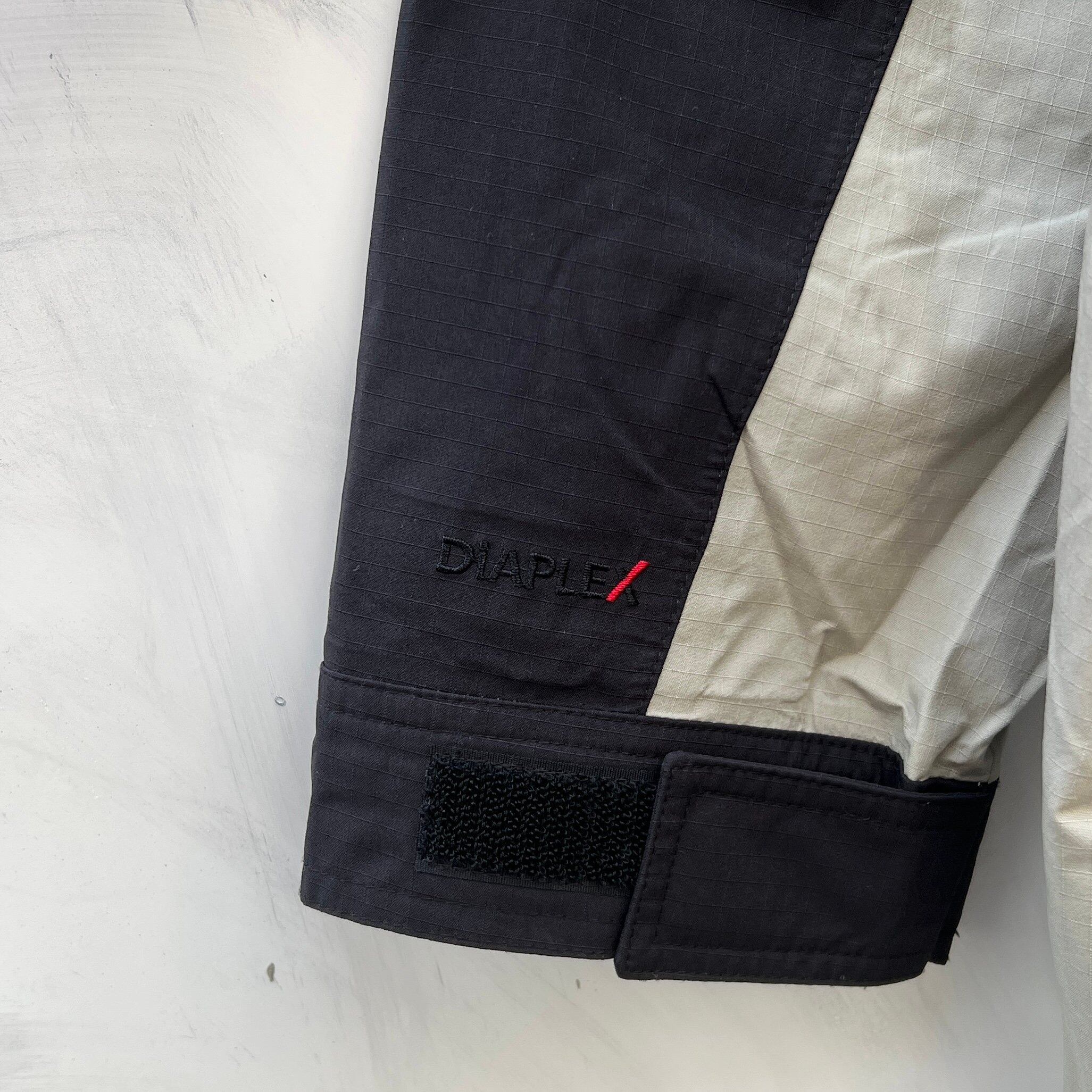 DIAPLEX素材を使用、ゴアテックスの様な防水吸湿素材、裏地を付ける為のジッパーがに裏が付くので、フリースなどを付けることで一体型のアウターとして暖かく着用いただけます。