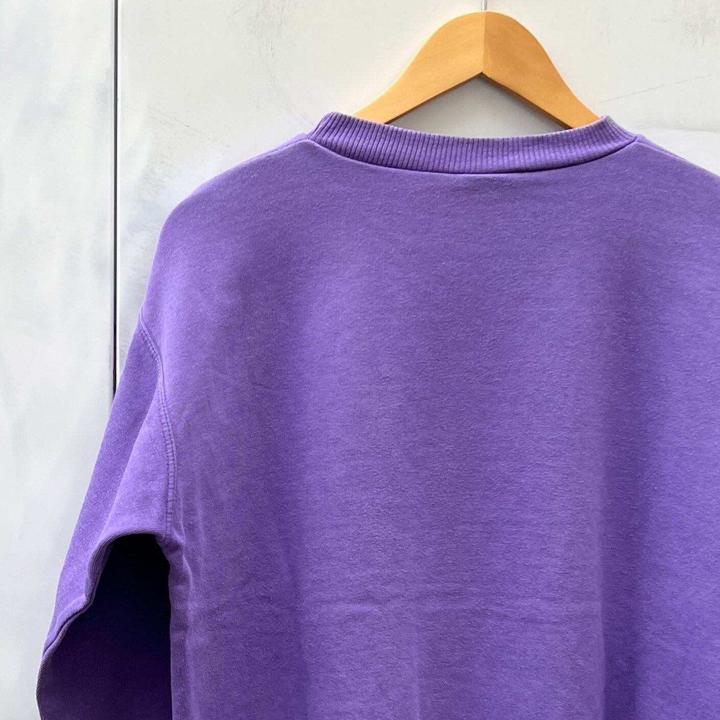 パープルの裏毛素材、フロントに4連ロゴプリントが入るデザインです。