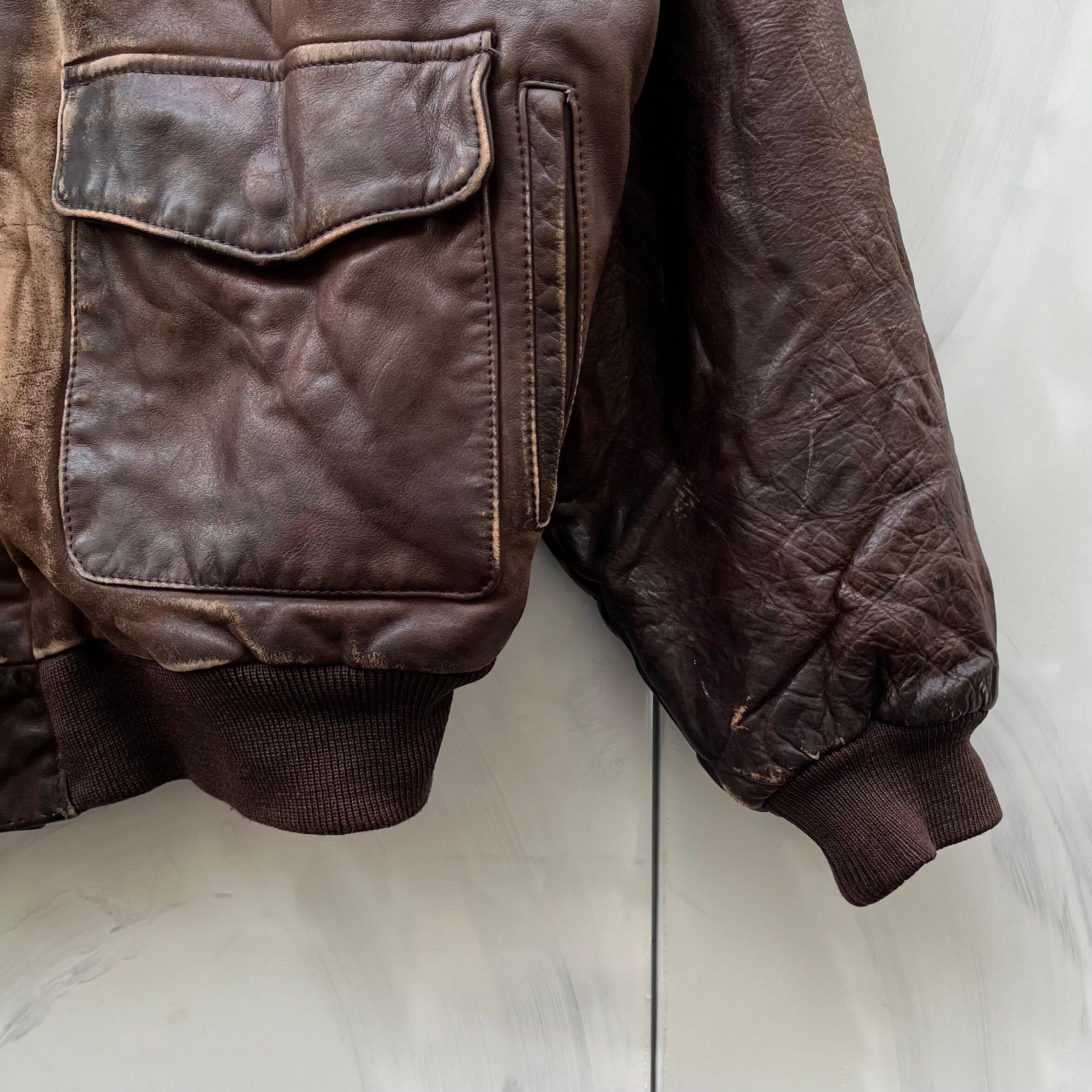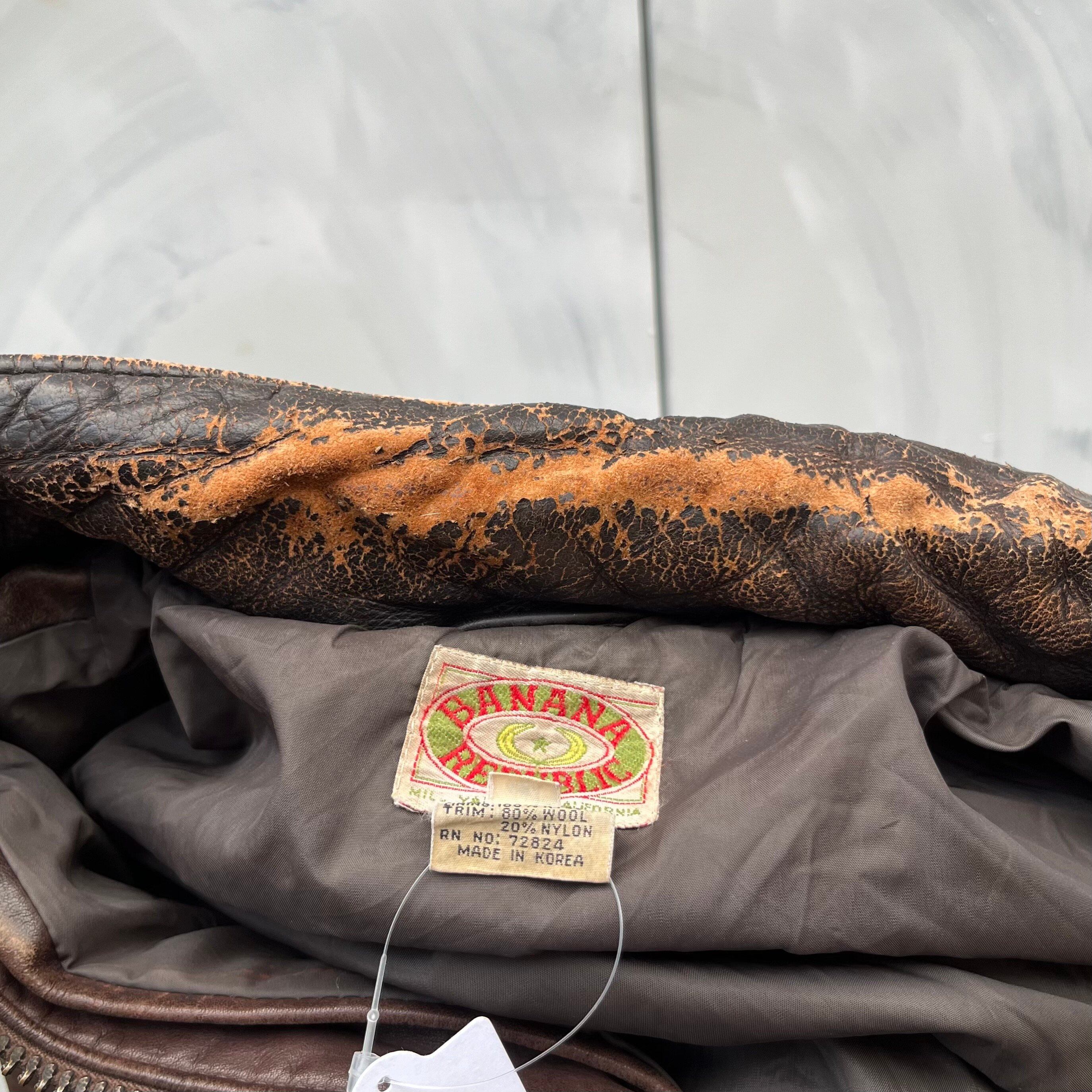 80年代、バナナリパブリックのレザーボンバージャケットになります。