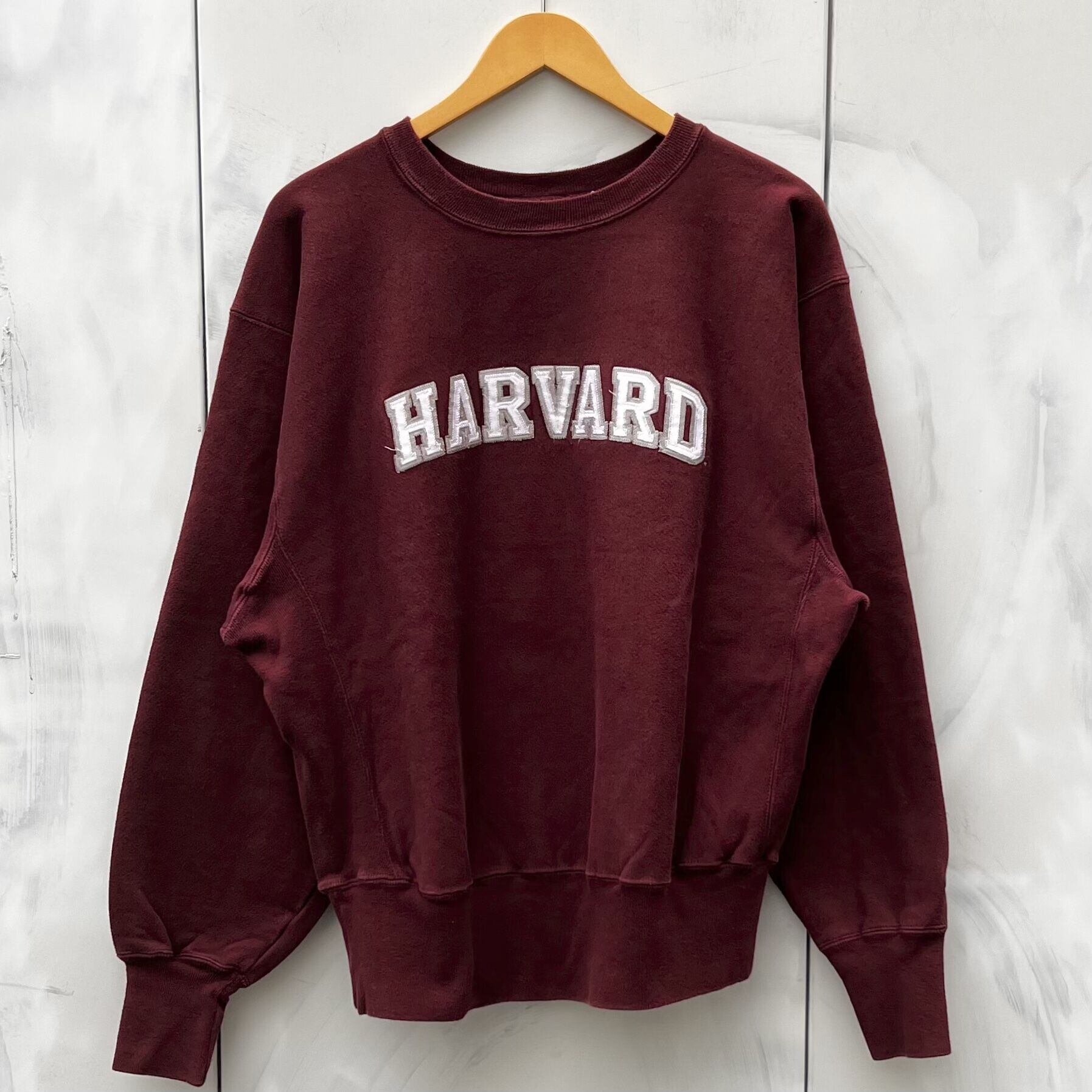 バーガンディの裏起毛素材、フロントにHARVARDのワッペンが付いたデザインです。