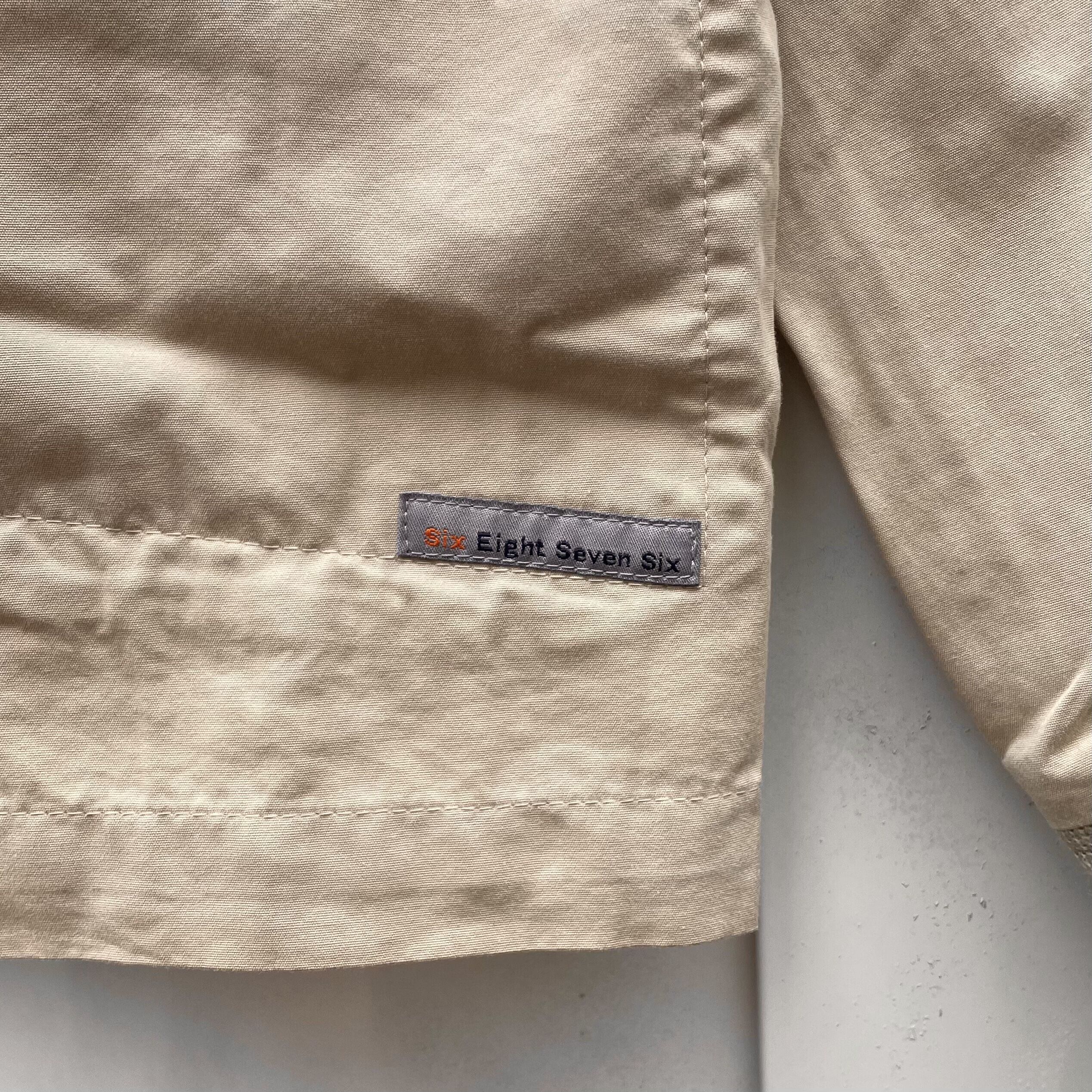 ベージュのコットン素材、左裾にSix Eight Seven Sixネーム、襟と袖にリブが付いたシンプルデザインです。