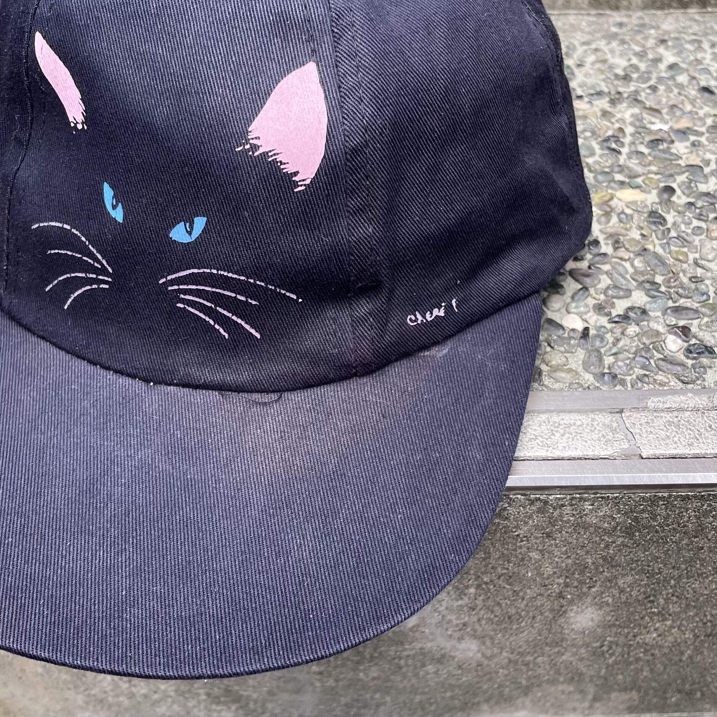 ブラックのコットン素材、フロントにネコ科の顔がプリントされたシンプルなデザインです。