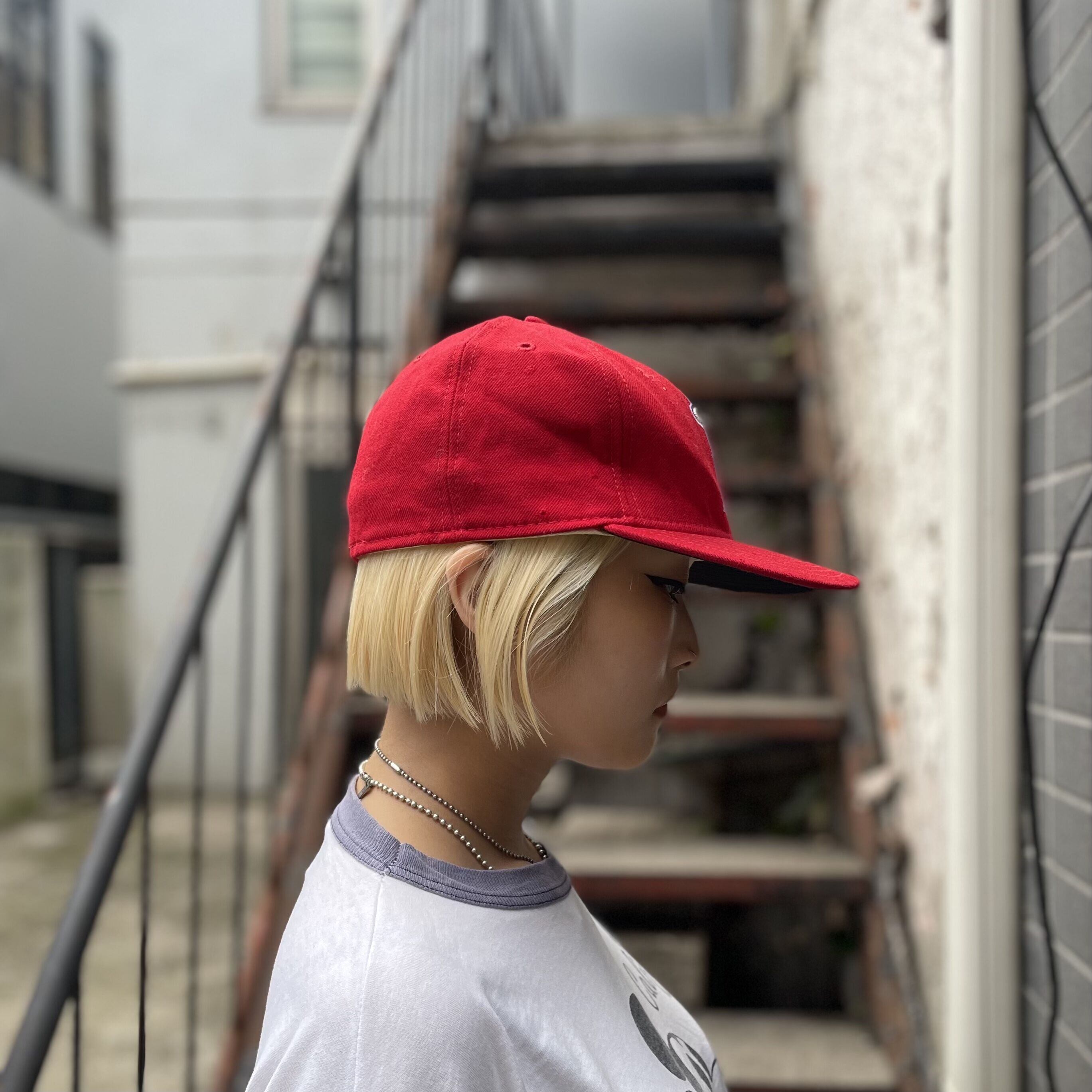 レッドのウール素材、フロントにロゴマーク刺繍、バックにバッターマン刺繍が入るシンプルデザインです。
