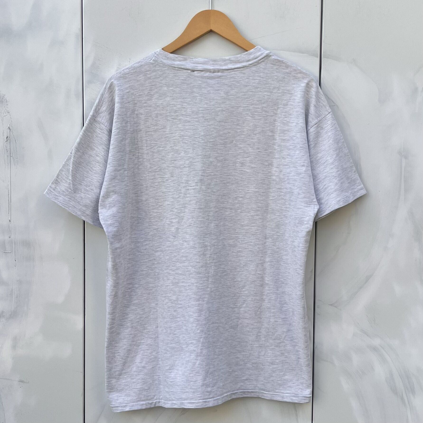 アッシュグレーのコットンボディ、フロントに鷹がギターを弾いているグラフィックとロゴのプリントが入るデザインです。