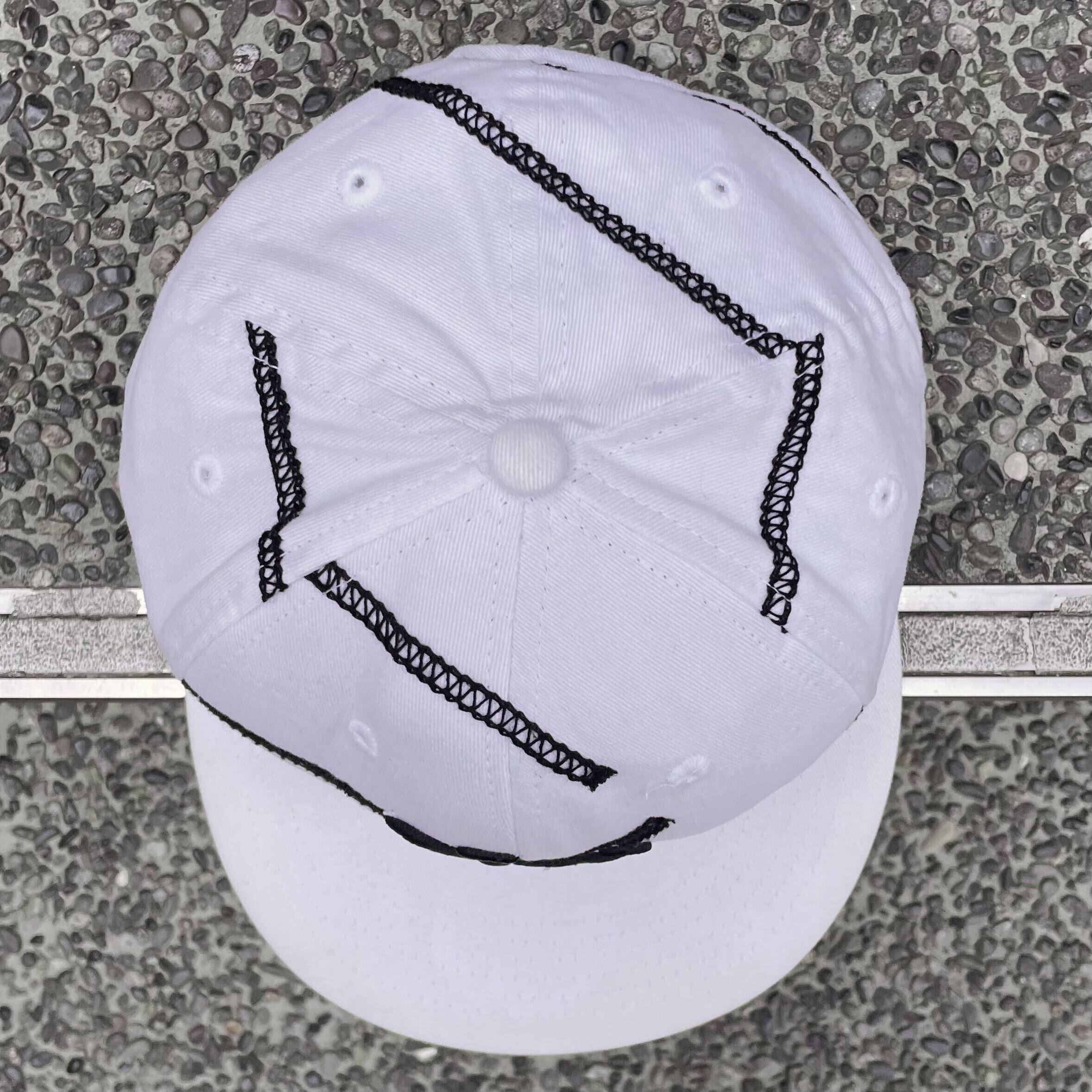 ホワイトのコットン素材、フロントにNYロゴ刺繍、左サイドに1939 BLACK YANKEES ALL STAR TEAMロゴ刺繍、バックにBLACK YANKEES刺繍、パネルをまたいで全体にチェーンのステッチが配されたデザインです。