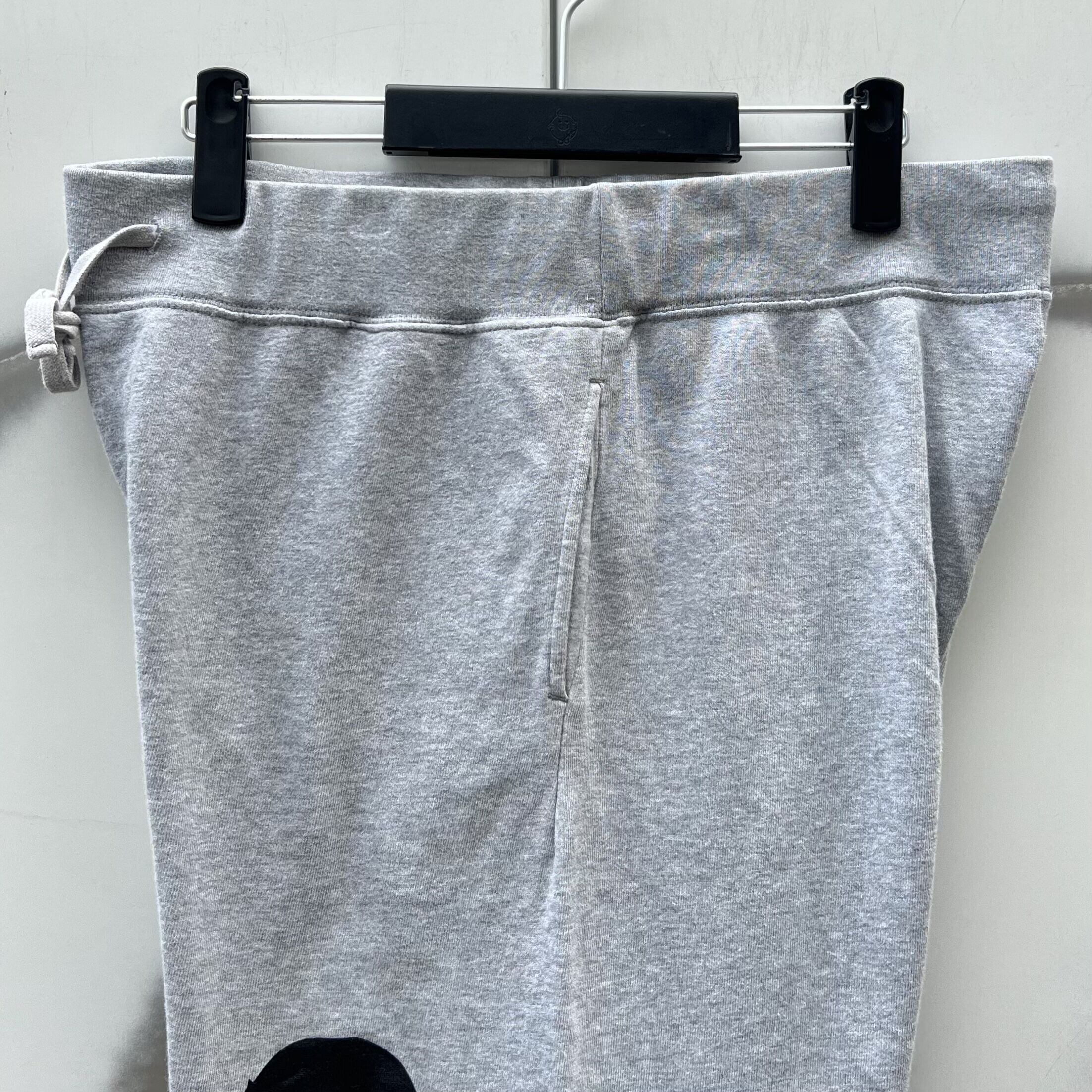 グレーのスウェット素材、左足にエイププリント、ピスネームの付いたシンプルデザインです。