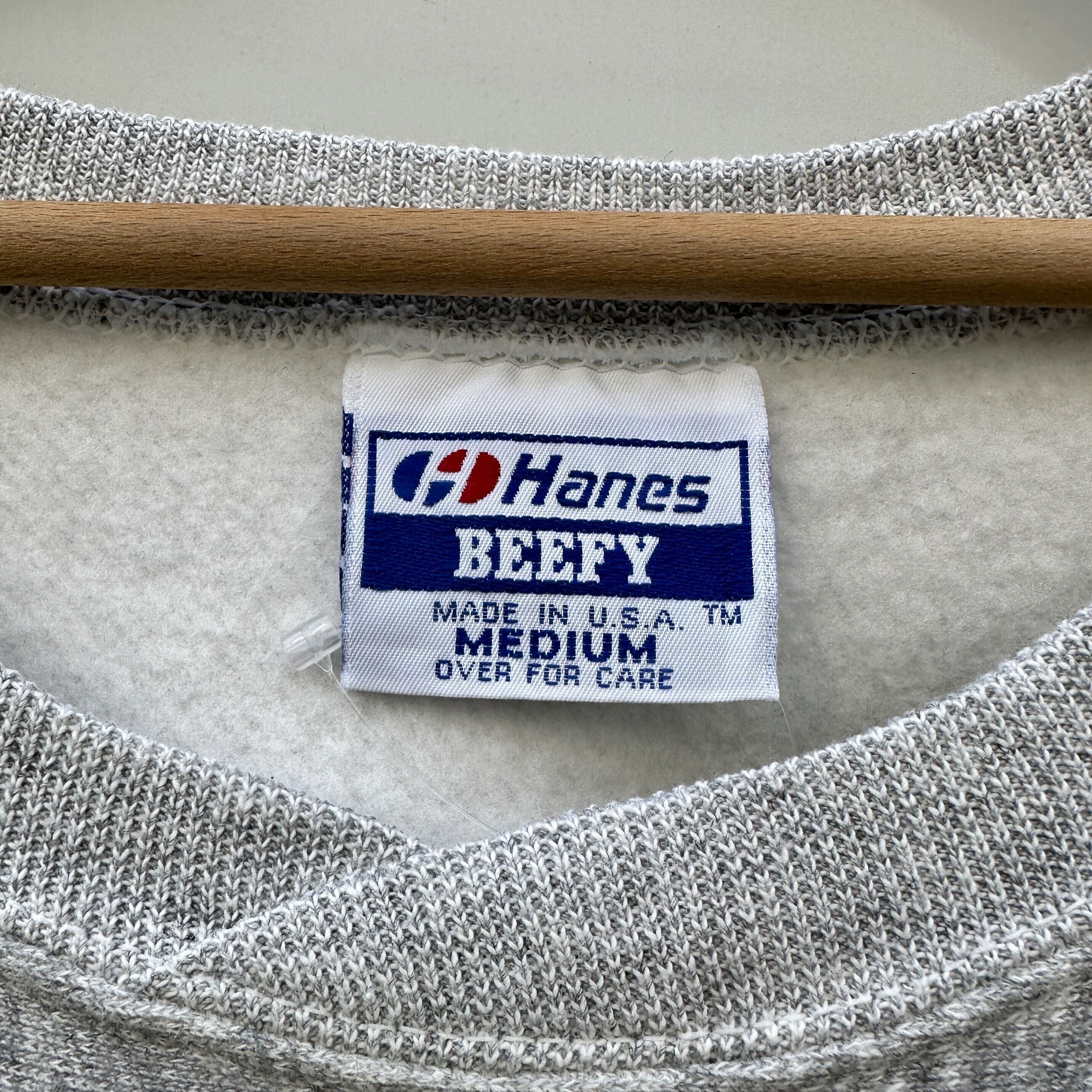 HanesのBEEFEEボディ、リバースウィーブの様に横取り生地のサイドにリブが付いています。