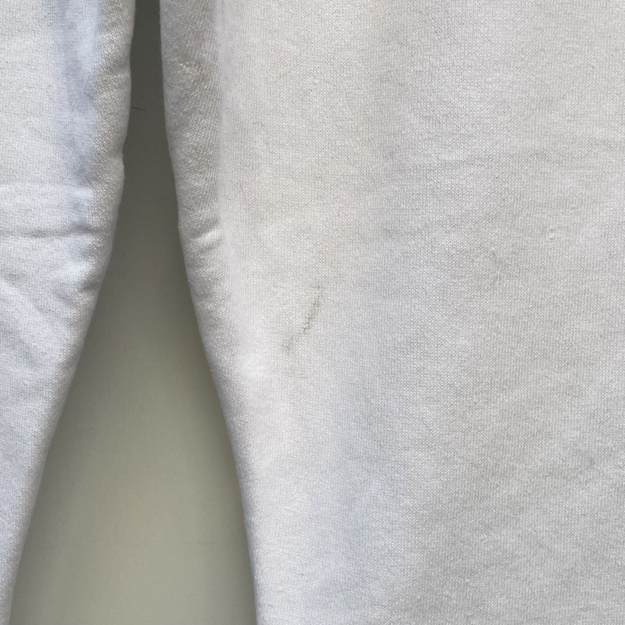 ホワイトの裏起毛素材、ポケットなどは無く、サイドシームの無いスタンダードデザインです。