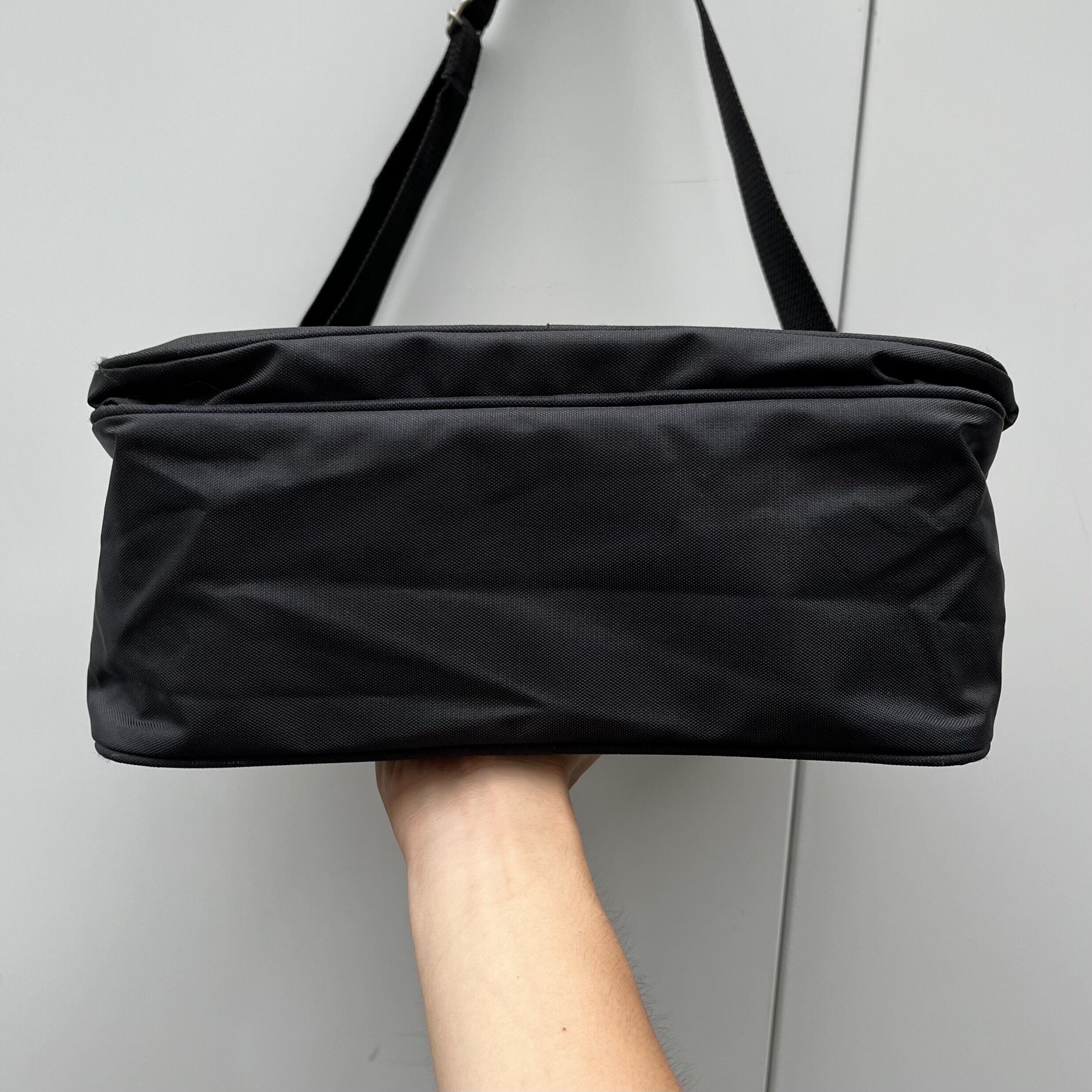 当時のトレンドでもあった長方形のトラベルバッグ型になります。