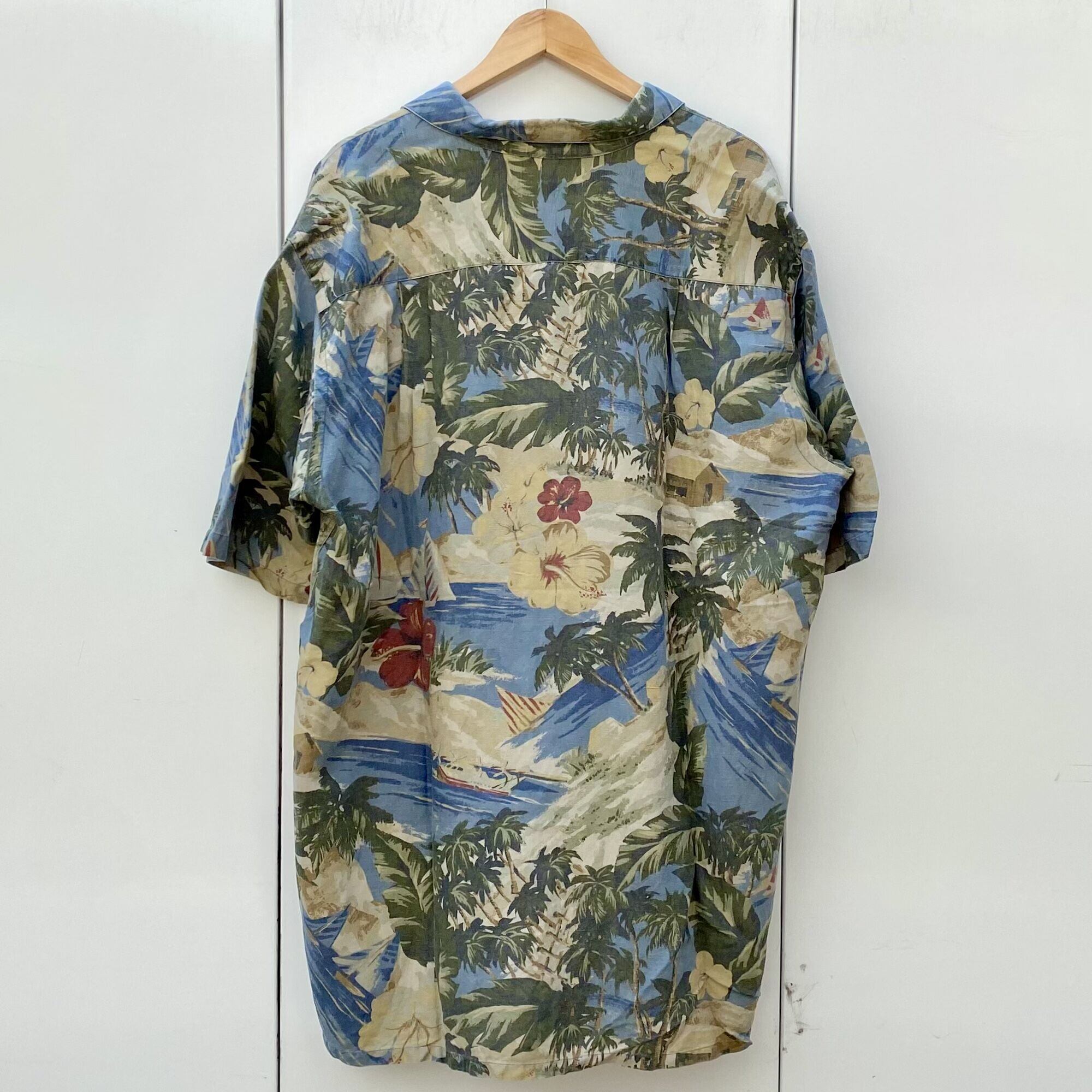 NAUTICA/ノーチカ 柄 リネンアロハシャツ 90年代 (USED)