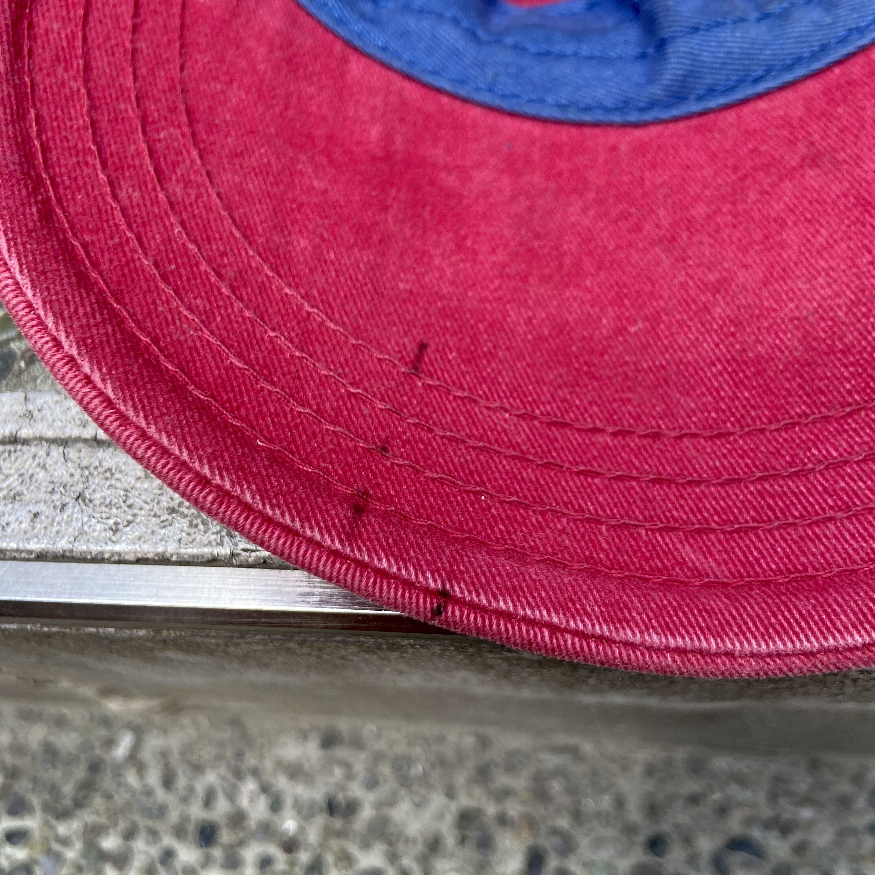 レッドのコットン素材、フロントにフラッグロゴプリント、5パネルのジェットキャップのデザインです。