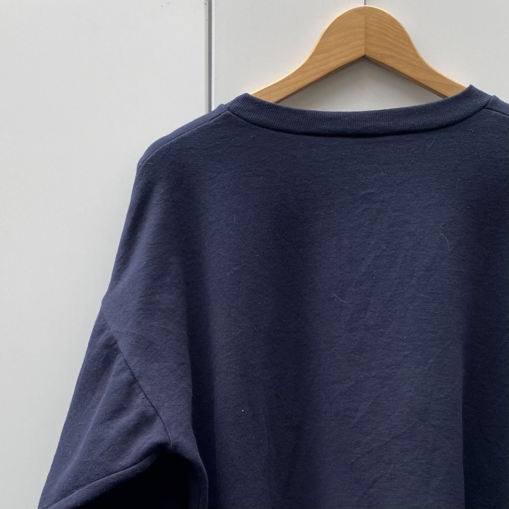 ネイビーの裏起毛素材、フロントにウルバリンズとバスケットリングの柄がプリントされたデザインです。