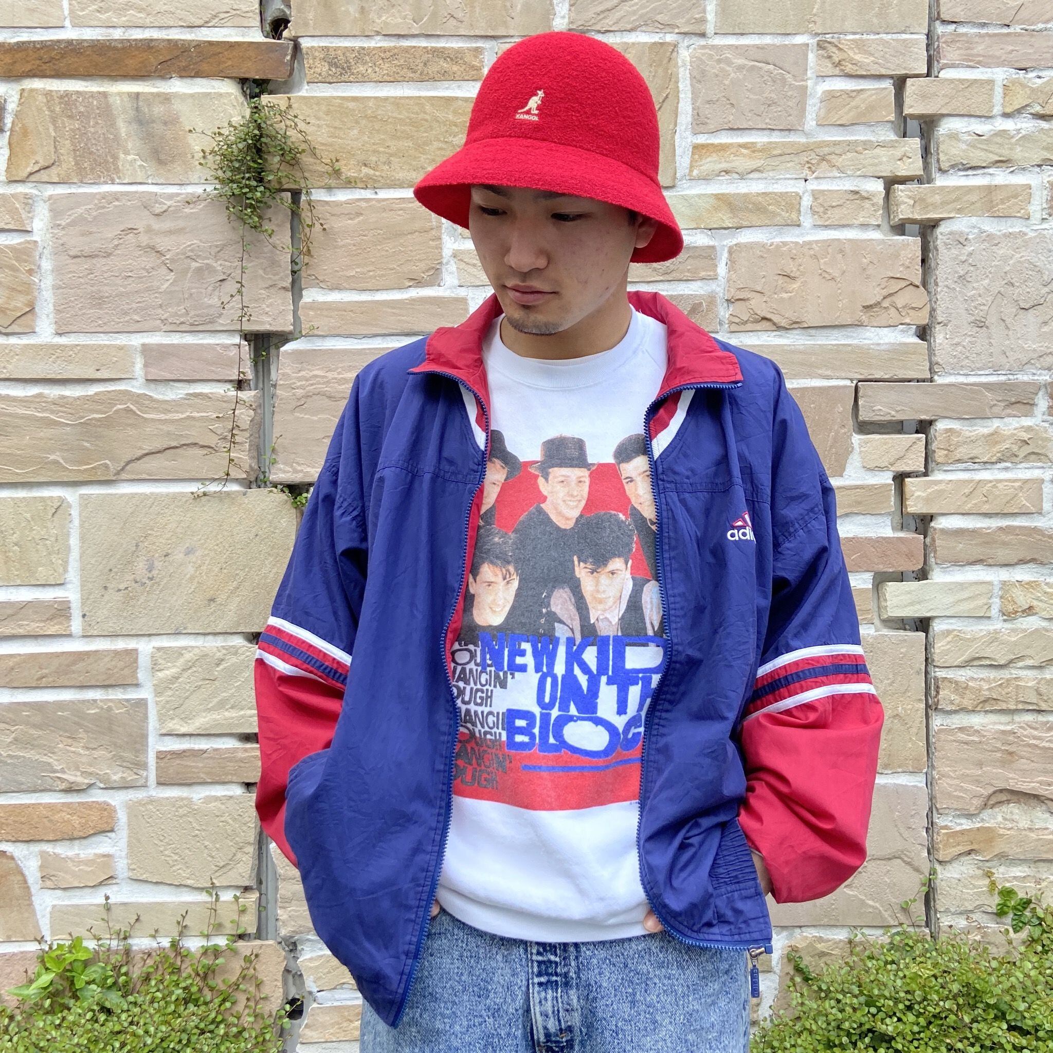 90年代、アディダスのウィンドブレーカージャケットになります。ネイビーxワイン、ホワイトのラインが入り、バックには大きなロゴが刺繍されたデザインです。
