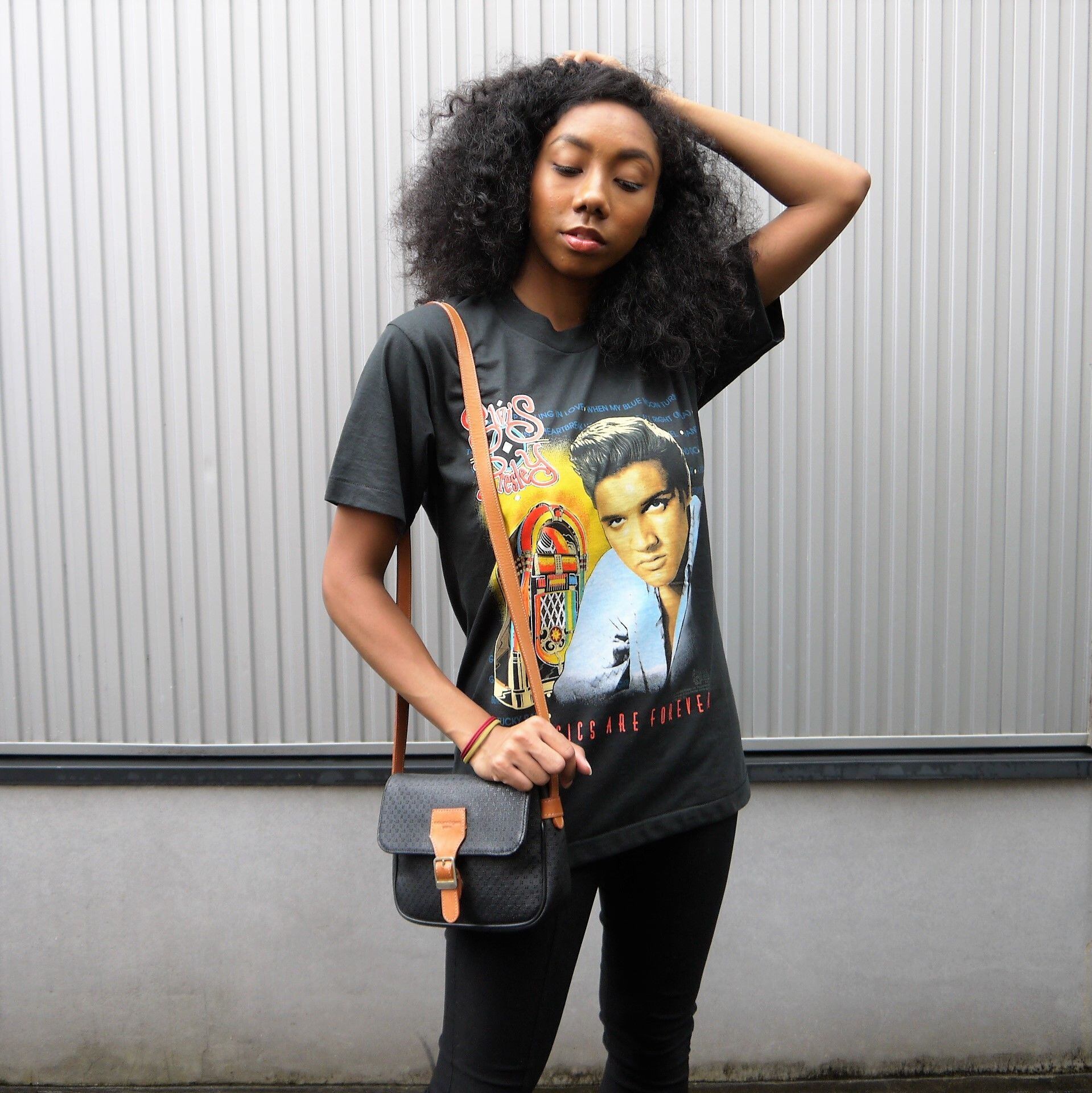 ブラックボディにエルビスのの顔とジュークボックス、彼の曲の名がプリントされたデザインです。