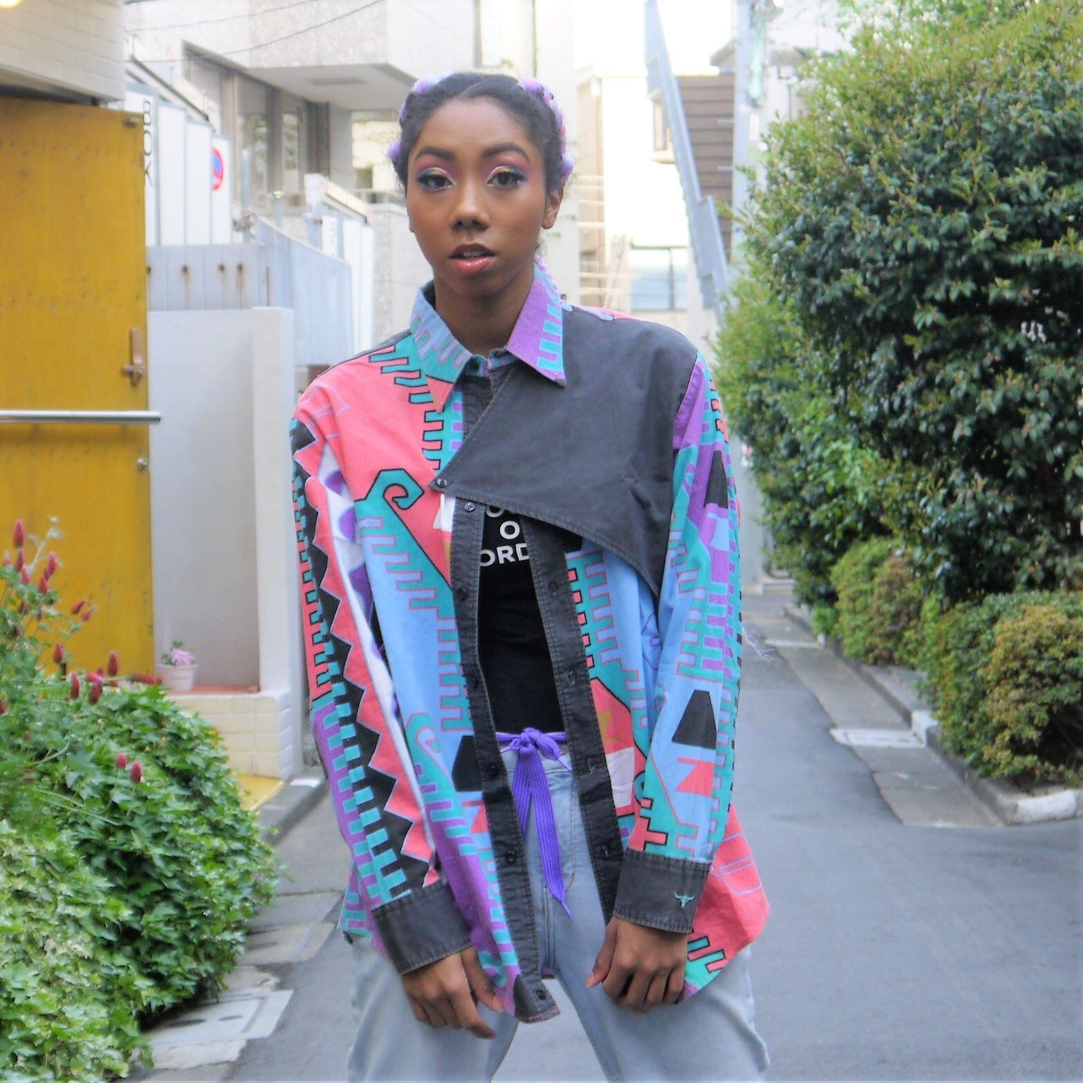 ロングホーンの90年代柄シャツで、柄のモチーフ等は分かりませんが、かなり珍しい変ったデザインかと思われます。