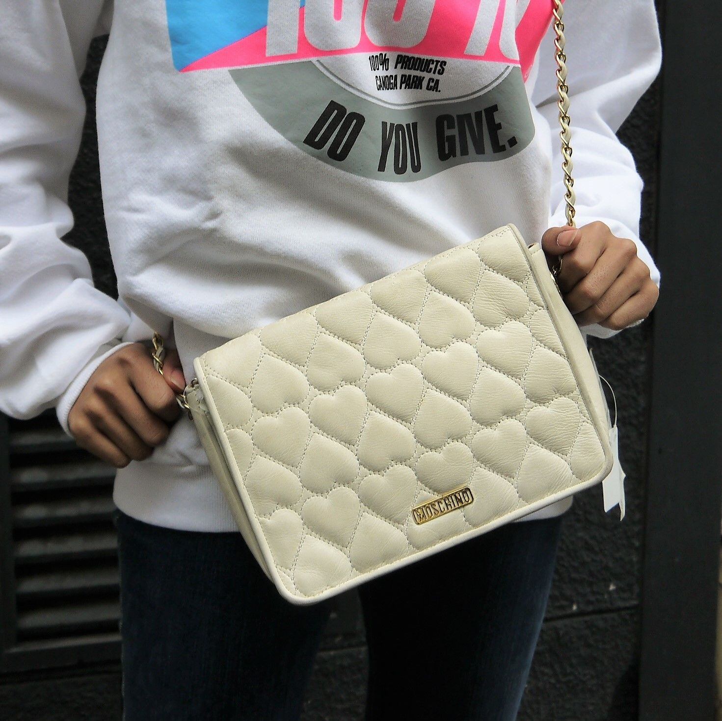 当時流行のチェーンバッグ仕様でモスキーノらしく、ハートマークがモチーフのデザインです。