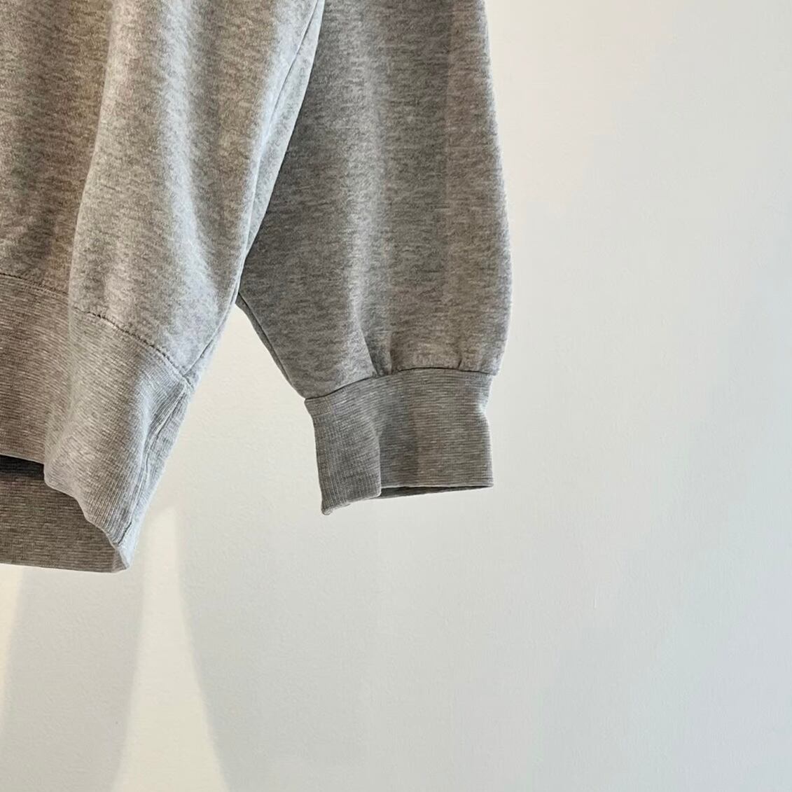 グレーのコットン裏起毛素材、フロントに大きくロゴプリント、バックに大きくJUST DO ITとロゴがプリントされたシンプルデザインです。