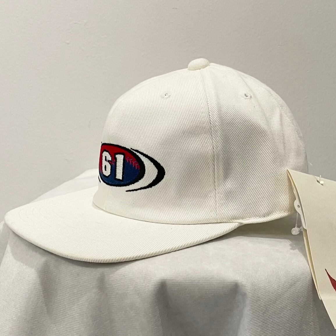 ホワイトのコットン系素材、フロントに61の野球ボール?刺繍、バックにスウォッシュとKOREAN EXPRESS刺繍、ベロクロのアジャスターを使用したデザインです。
