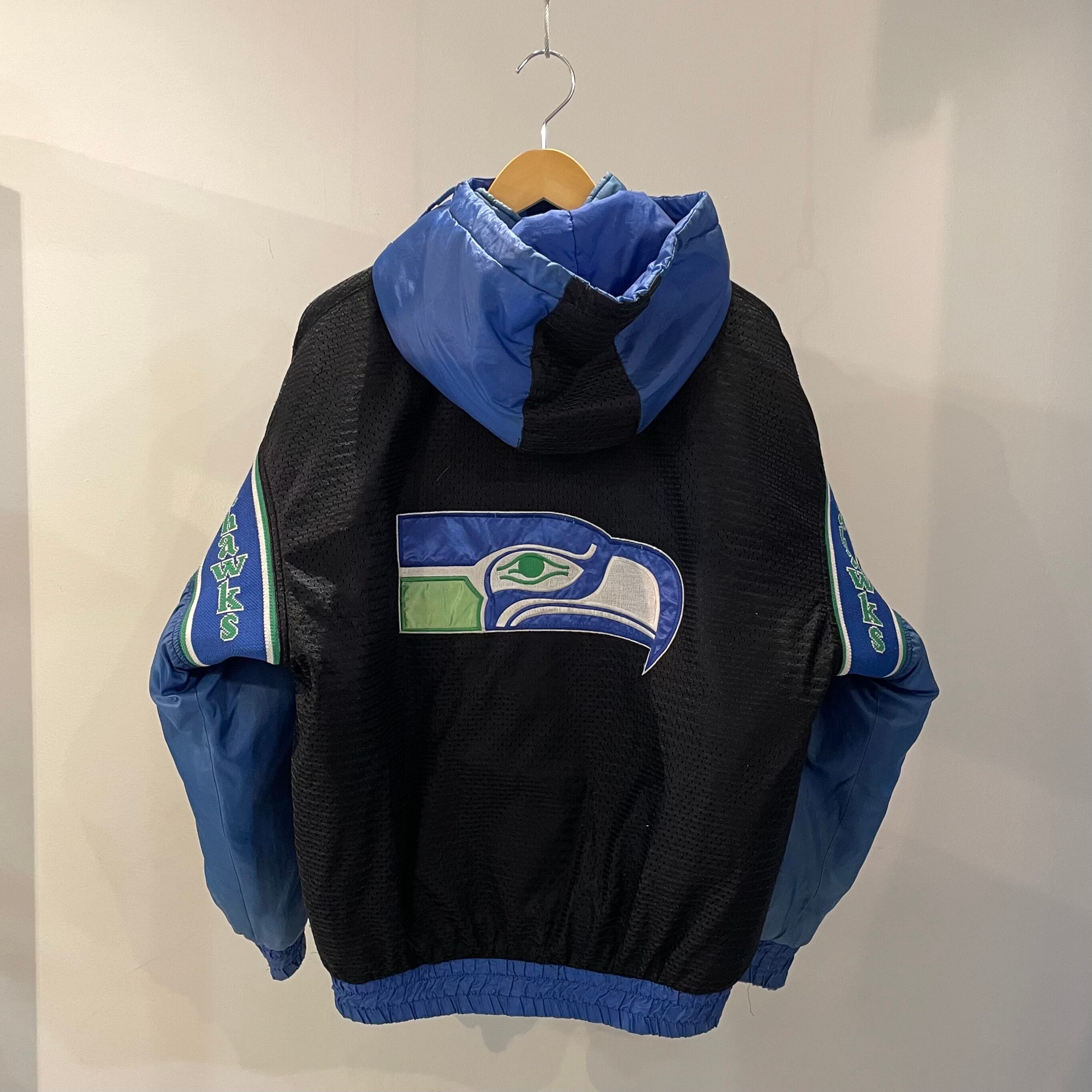 90年代のプロプレイヤー社製、NFLシアトルシーホークスのリバーシブル中綿フードジャケットになります。