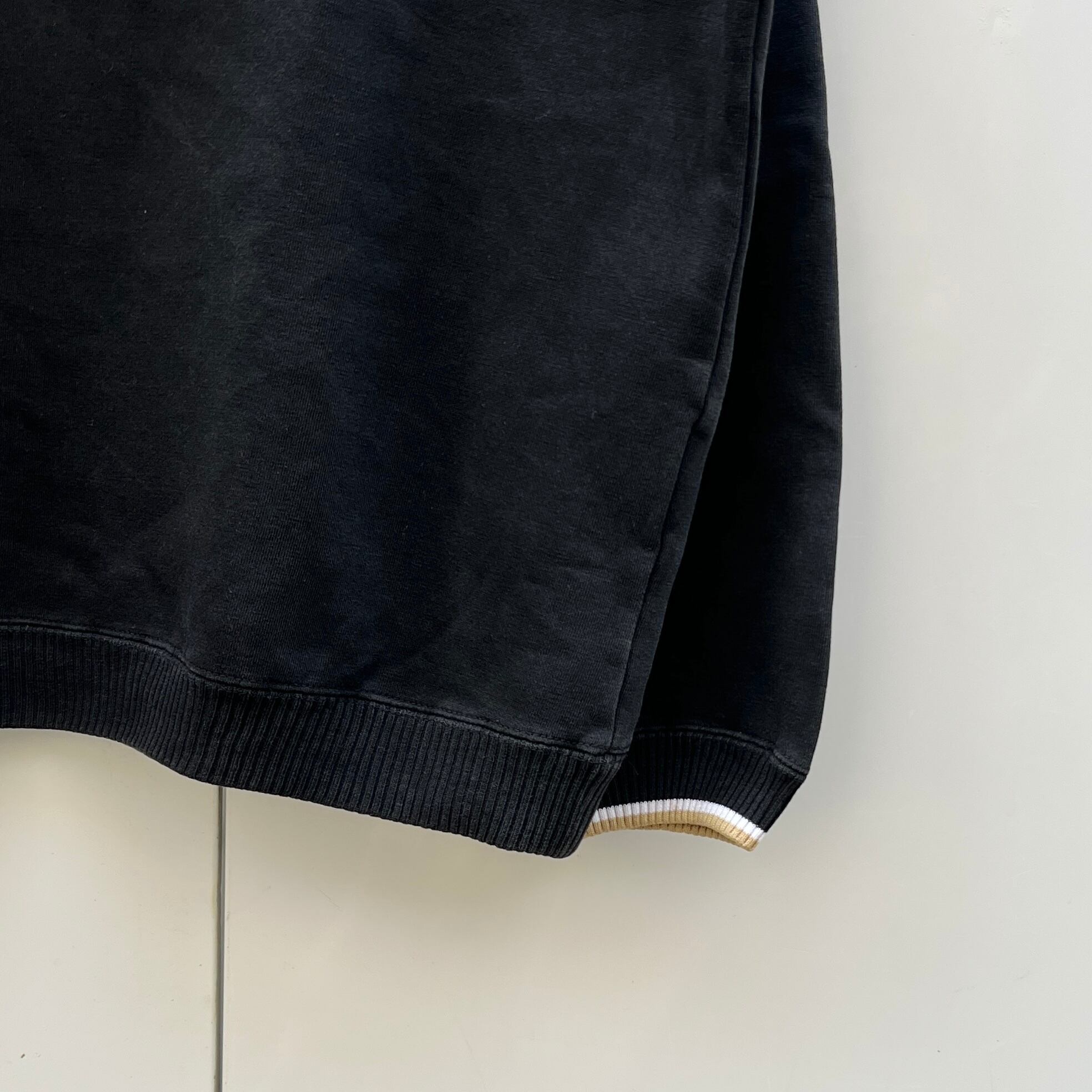 ブラックの裏起毛素材、左胸にロゴ刺繍、バック襟元にNFLロゴマーク刺繍が入るデザインです。